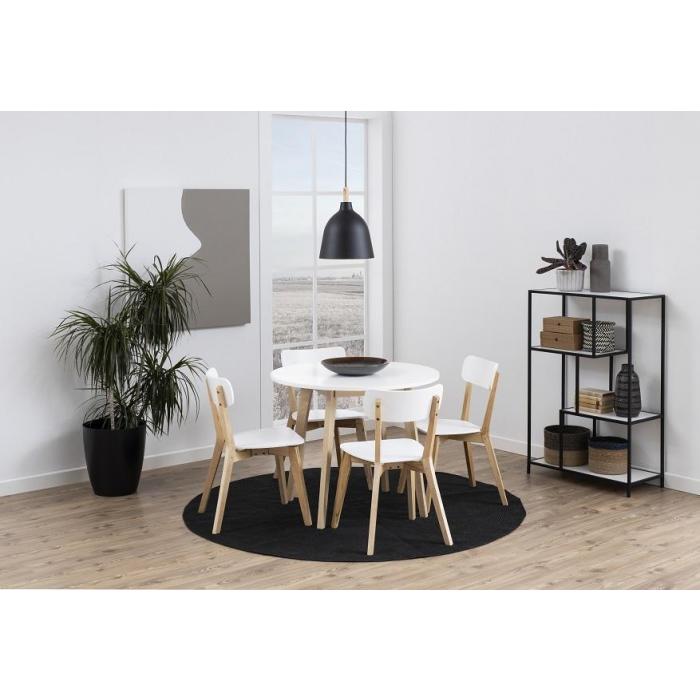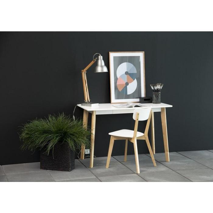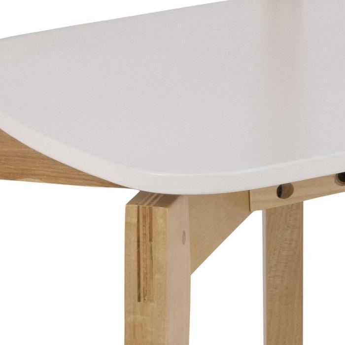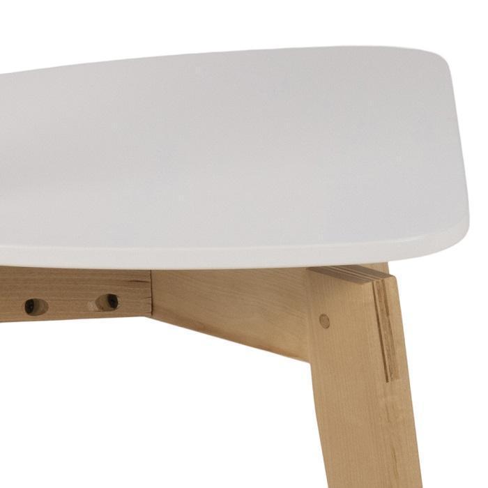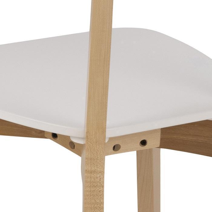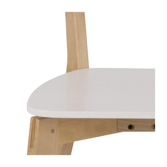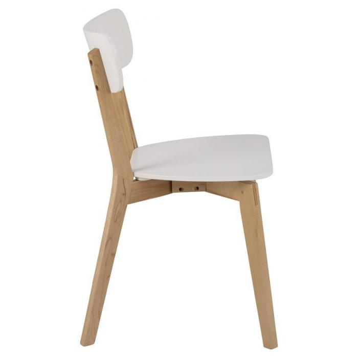 Krzesło Kansas charakteryzuje się połączeniem drewna z białym kolorem, co świetnie ze sobą współgra. Siedzisko zostało wykonane z wytrzymałej płyty MDF, która została pomalowana na biało. Podstawa krzesła to drewno brzozy, które zostało polakierowane. Drewno brzozowe jest trwałe oraz posiada jednolitą strukturę, dzięki czemu meble wyglądają naturalnie. Szerokość siedziska krzesła wynosi 41cm.