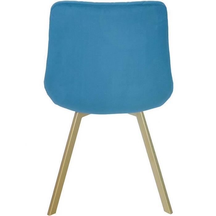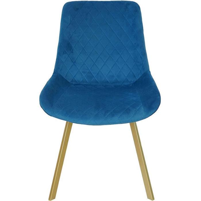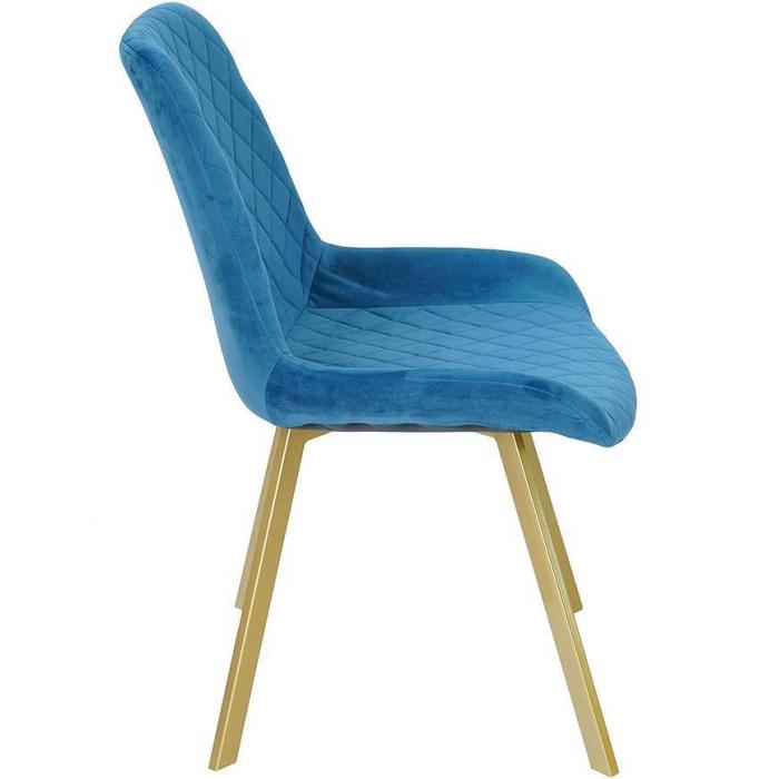 Krzesło tapicerowane, które idealnie wpasuje się w jadalnie, pokój dzienny lub inne pomieszczenie. Krzesło wniesie do wnętrza elegancję oraz ciekawy wygląd. Dzięki swojej kolorystyce skomponuje się z większością aranżacji. Siedzisko krzesła zostało pokryte tkaniną, natomiast wypełnienie pianką zapewni komfort użytkowania. Całość została umieszczona na stabilnym, metalowym stelażu w kolorze złotym. Wysokość do siedziska 47 cm.