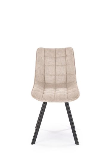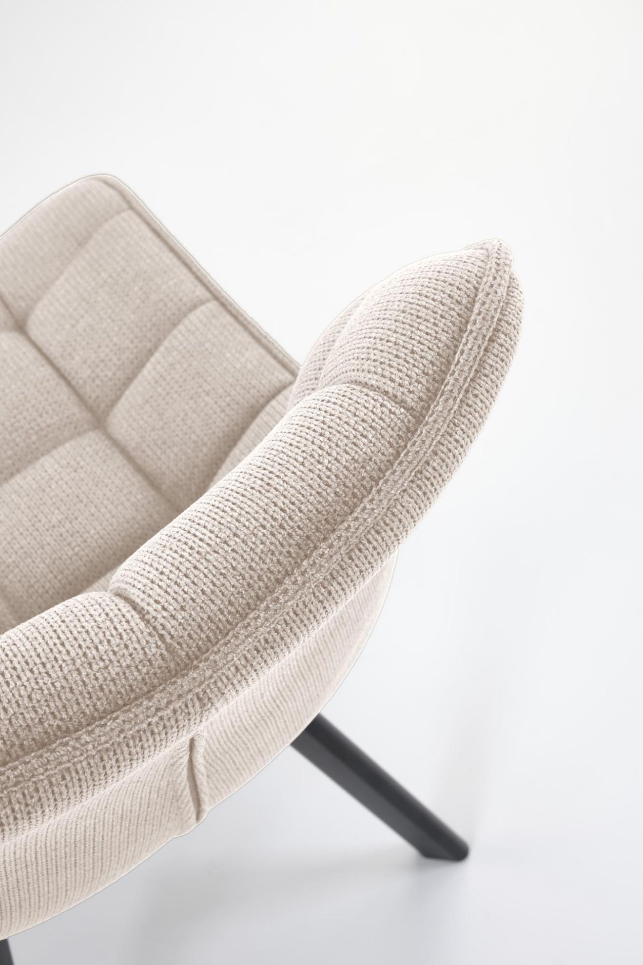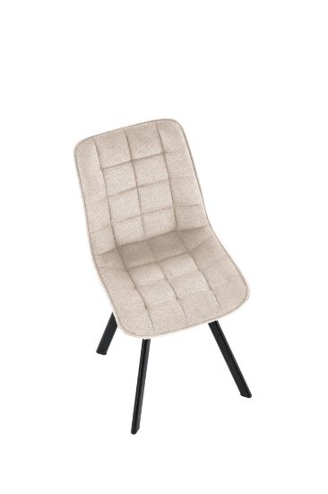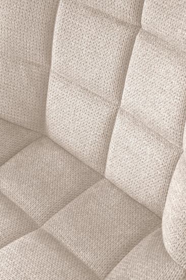 Siedzisko i oparcie krzesła wykonane są z miękkiej i przyjemnej w dotyku tkaniny w eleganckim beżowym kolorze (VARDO#28), co nadaje mu luksusowy wygląd i sprawia, że idealnie komponuje się z różnymi stylami aranżacyjnymi. Stabilna konstrukcja krzesła opiera się na nogach wykonanych ze stali malowanej proszkowo, co gwarantuje trwałość i nowoczesny wygląd.
