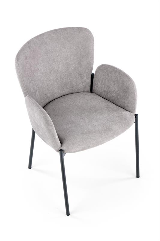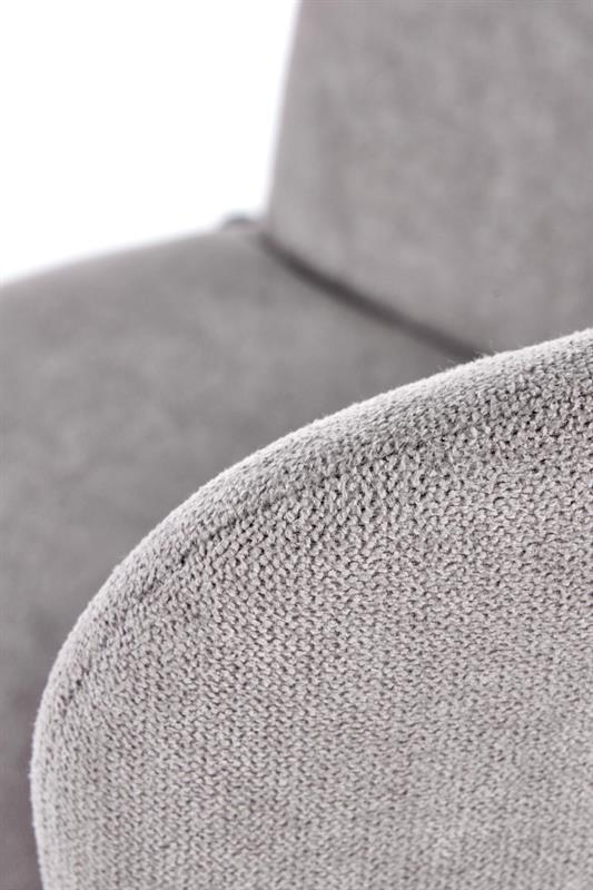 Materiał tapicerki to delikatna tkanina w popielatym odcieniu, nadająca krzesłu subtelnego uroku. Tkanina ta jest nie tylko estetyczna, ale także przyjemna w dotyku, zapewniając wygodę podczas długotrwałego siedzenia. Solidna stal, malowana proszkowo, stanowi stabilny stelaż krzesła, co gwarantuje trwałość mebla.