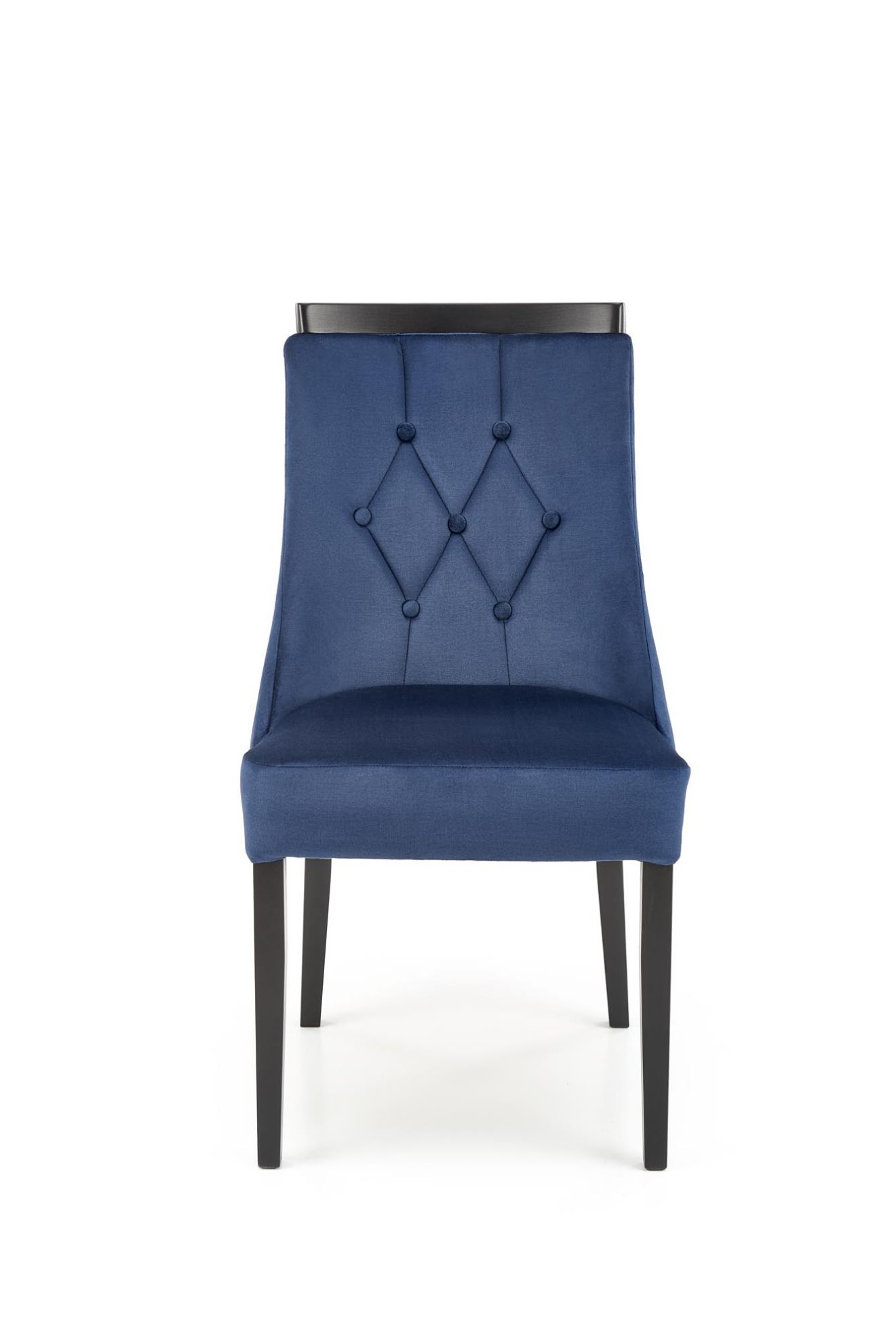 Krzesło Kingdom to połączenie eleganckiego drewna litego bukowego z luksusową tkaniną velvet o delikatnym odcieniu MONOLITH 77 (granatowym) na siedzisku i oparciu, co tworzy harmonijny i stylowy design. To mebel, który emanuje klasyką i komfortem.