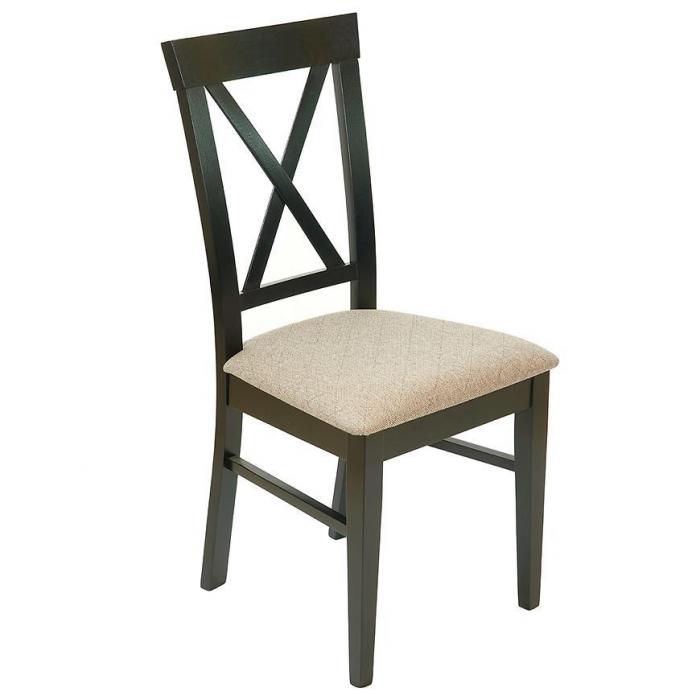 Nogi zostały wykonane z drewna, a siedzisko jest tapicerowane tkaniną. Wysokość do siedziska wynosi 48 cm.