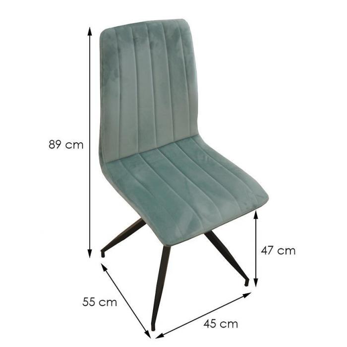 Krzesło Kris to mebel funkcjonalny. Klasyczny styl krzesła wpasuje się w niejedno wnętrze. Krzesło będzie pasowało do kuchni, jadalni, pokoju dziennego oraz innych pomieszczeń. Nogi zostały wykonane z metalu, a siedzisko pokryte tkaniną w kolorze turkusowym wypełnione pianką. Wysokość do siedziska wynosi 47 cm.