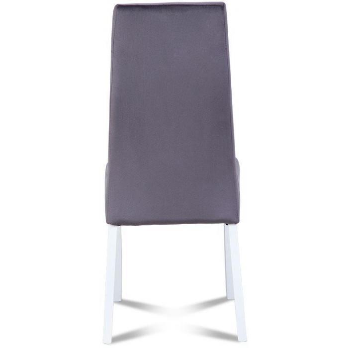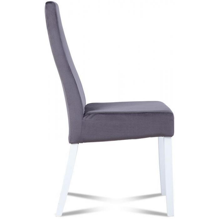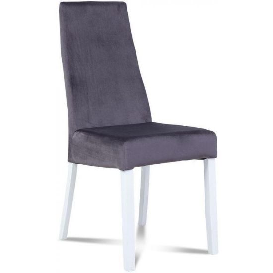 Siedzisko i oparcie tapicerowane tkaniną Riviera 97 w kolorze grafitowym. Ten przypominający aksamit materiał będzie się mienić podczas użytkowania ze względu na dłuższy niż w gładkich tkaninach włos. Mebel ma proste drewniane nogi barwione na kolor biały. Krzesło Kris Lux sprawdzi się we wnętrzach eklektycznych, których wystrój stanowi pomieszanie stylów, epok. Będzie również doskonałym uzupełnieniem zarówno masywnego dębowego stołu, jak i futurystycznego przejrzystego blatu opartego na metalowym stelażu.