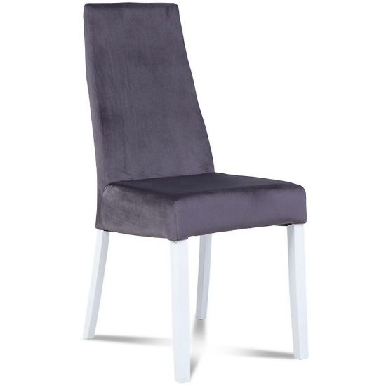 Stelaż krzesła, utrzymany w śnieżnobiałym kolorze, wykonany został z trwałego drewna, co gwarantuje stabilność i wytrzymałość na długie lata użytkowania. Natomiast siedzisko w intensywnym odcieniu grafitu, pokryte wytrzymałą tkaniną, zapewnia nie tylko wygodne miejsce do odpoczynku, ale również dodaje elegancji całej kompozycji.