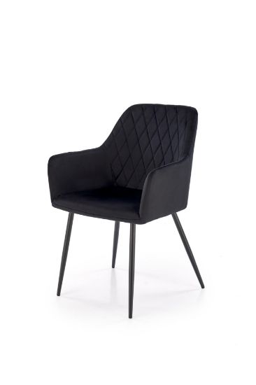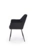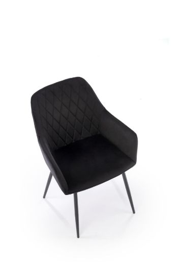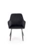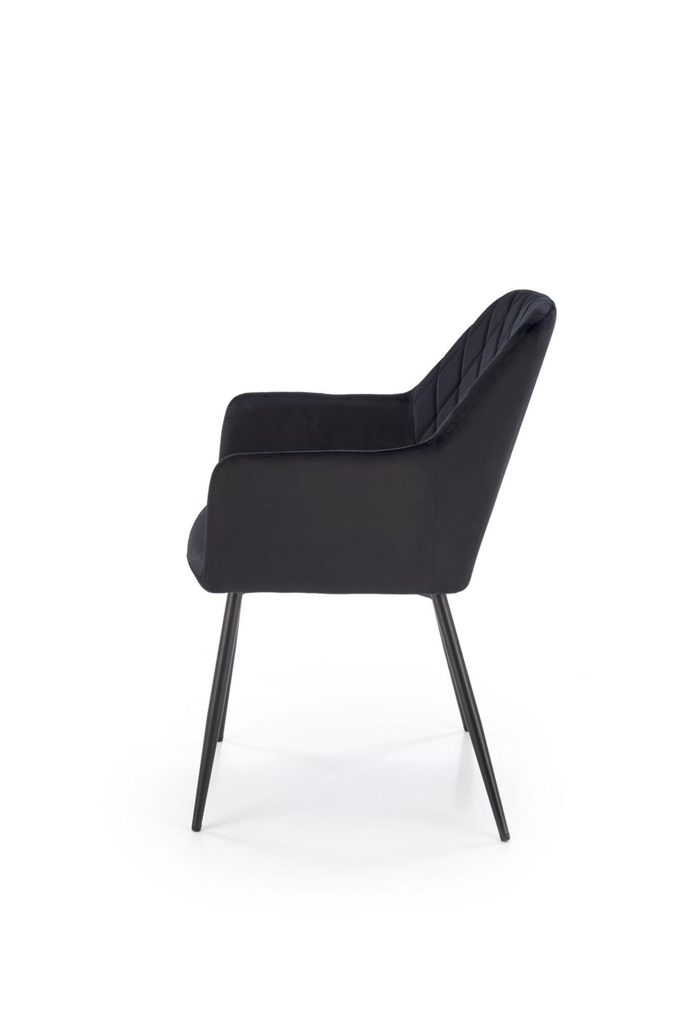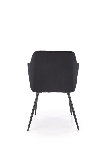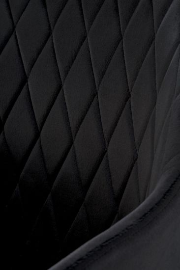 Obicie z miękkiej tkaniny velvet w czarnym kolorze HLR 66 dodaje krzesłu wyjątkowego uroku i elegancji, wprowadzając do wnętrza przytulność i styl. Nogi wykonane ze stali malowanej proszkowo zapewniają trwałość i stabilność, a ich nowoczesne wykończenie harmonijnie współgra z welurową tapicerką.