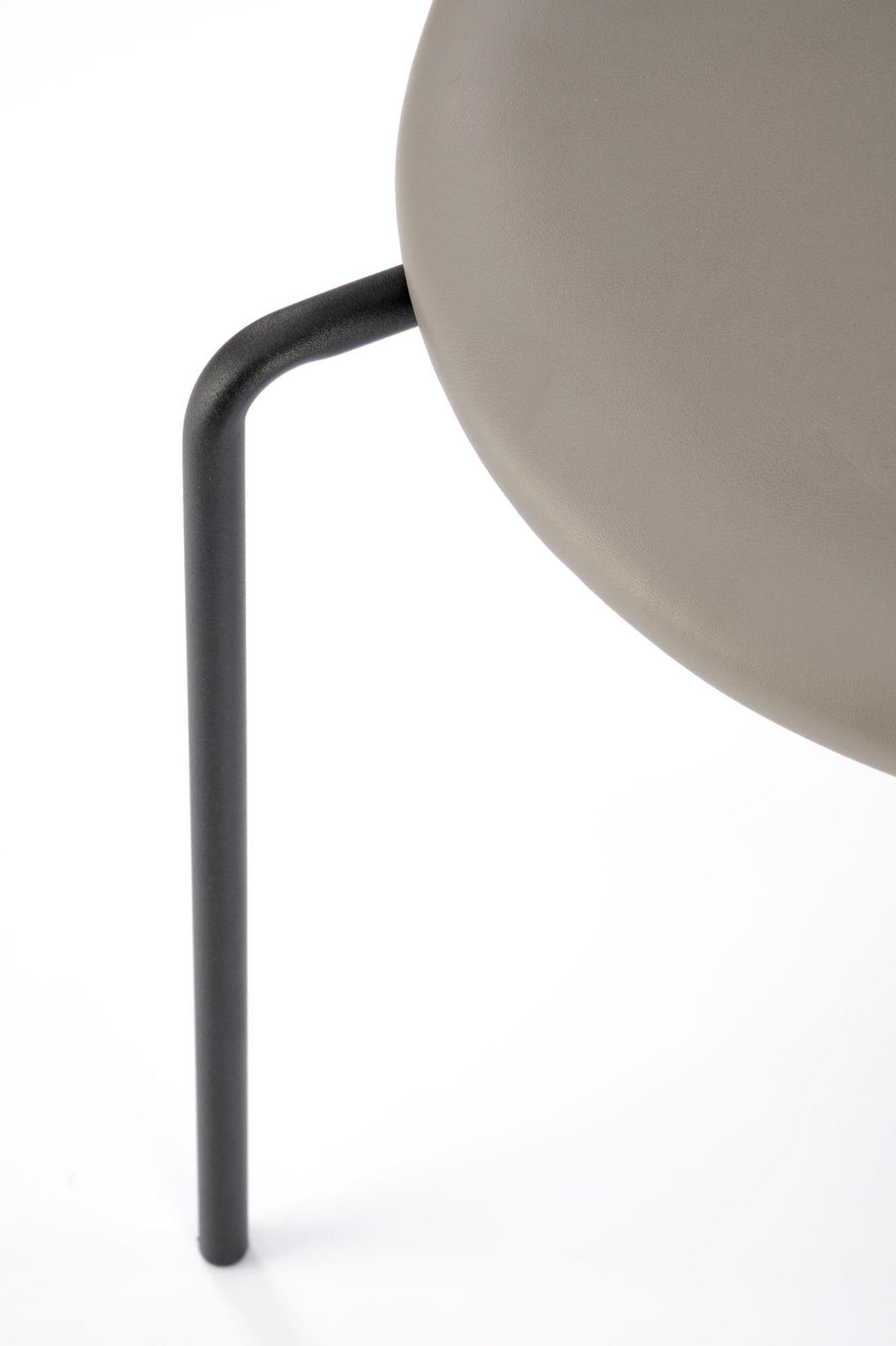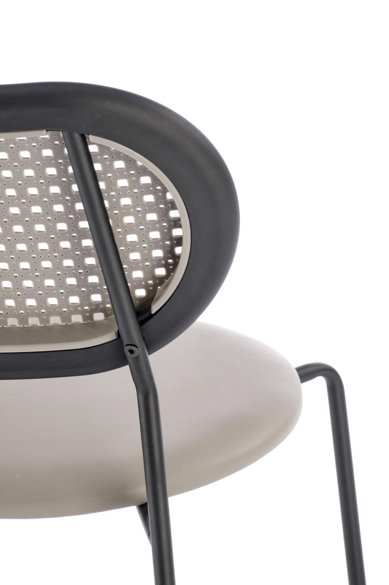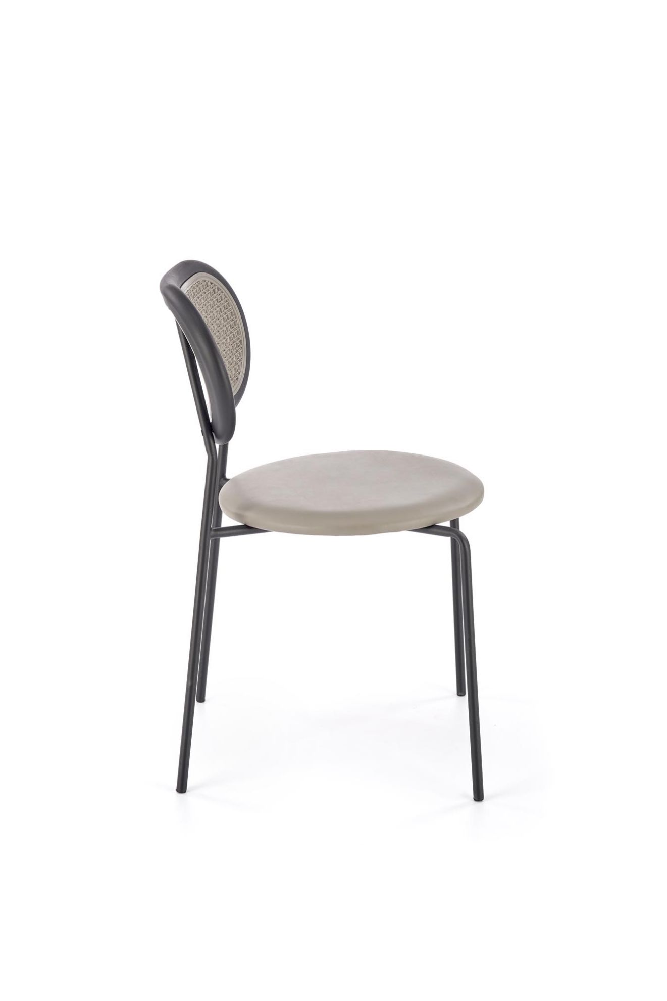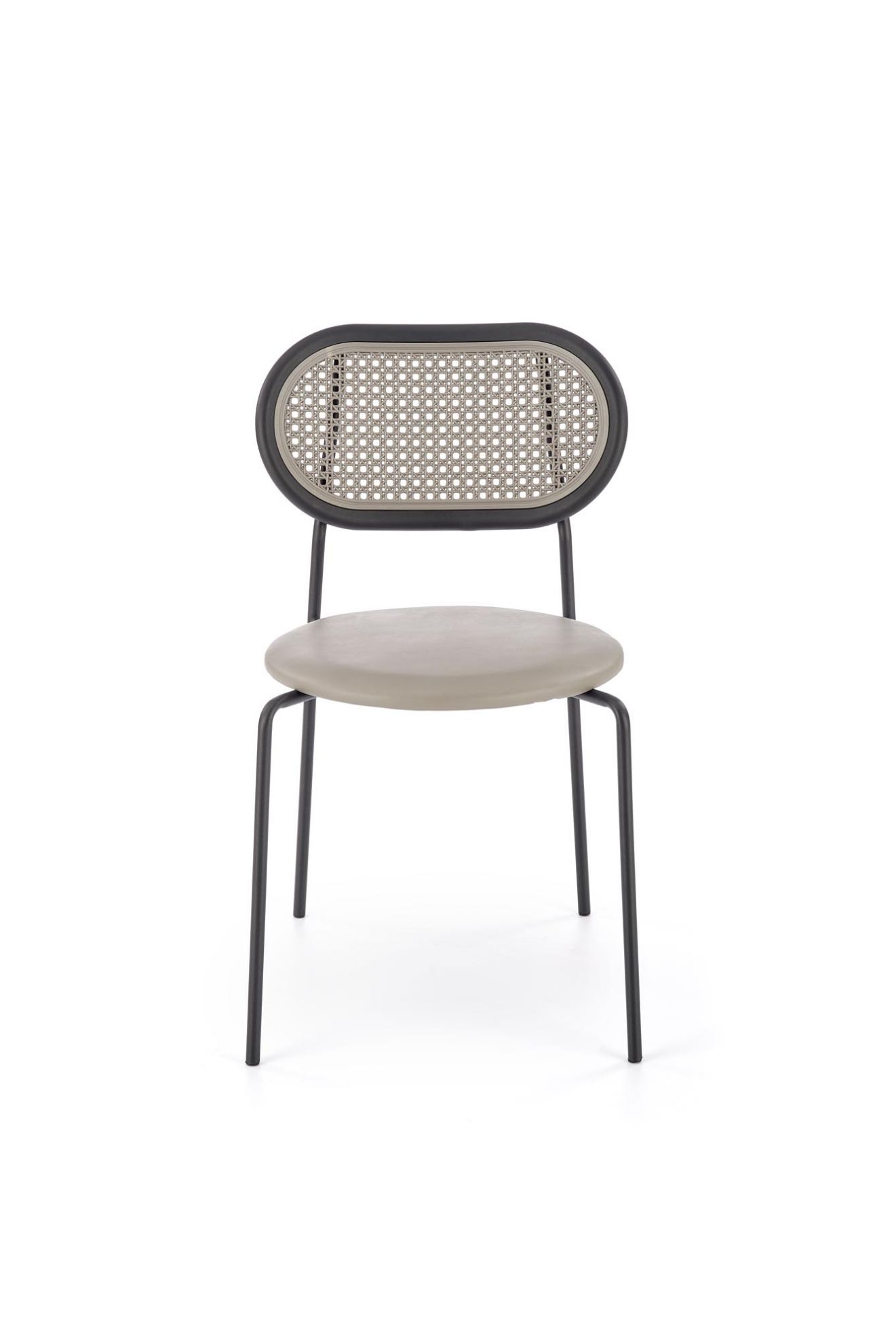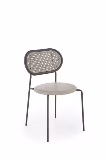 Siedzisko krzesła zostało obite ekoskórą, co nadaje mu elegancki wygląd i zapewnia wygodę podczas siedzenia. Ekoskóra jest trwała i łatwa w utrzymaniu, co sprawia, że krzesło jest praktycznym wyborem. Elementy dekoracyjne z rattanu syntetycznego i polipropylenu dodają krzesłu naturalnego uroku i ciepła. Rattan syntetyczny jest trwały i odporny na warunki atmosferyczne, dzięki czemu to krzesło może być używane zarówno wewnątrz, jak i na zewnątrz pomieszczenia. Konstrukcja krzesła została dodatkowo wzmocniona stalową ramą malowaną proszkowo, co gwarantuje stabilność i wytrzymałość.
