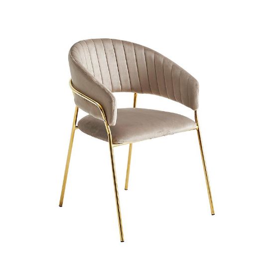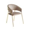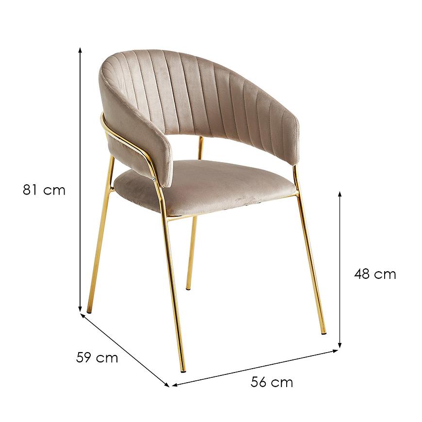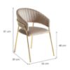 Beżowy kolor siedziska doskonale współgra z złotym stelażem, tworząc efektowną i elegancką całość. Ten wyjątkowy zestaw barw sprawia, że krzesło staje się nie tylko funkcjonalnym elementem wyposażenia, ale również designerskim akcentem, który przyciąga uwagę.