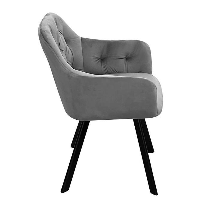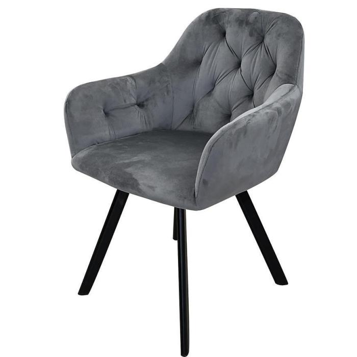 Krzesło wykonane z metalu i tapicerki- miłej w dotyku tkaniny. Posiada stabilną i solidną konstrukcję.