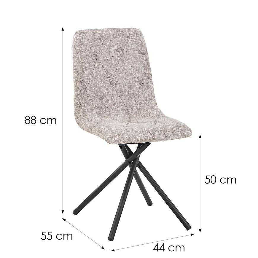 Siedzisko wykonano z przyjemnej w dotyku tkaniny, a jego wypełnienie stanowi miękka pianka gwarantująca wygodę podczas użytkowania. Wysokość siedziska 50 cm oraz całkowita wysokość krzesła 88 cm zapewniają komfortową pozycję przy stole. Proporcje 44 cm szerokości i 55 cm głębokości sprawiają, że model Luna dobrze dopasowuje się do sylwetki, umożliwiając wygodne korzystanie zarówno podczas posiłków, jak i pracy przy stole.
