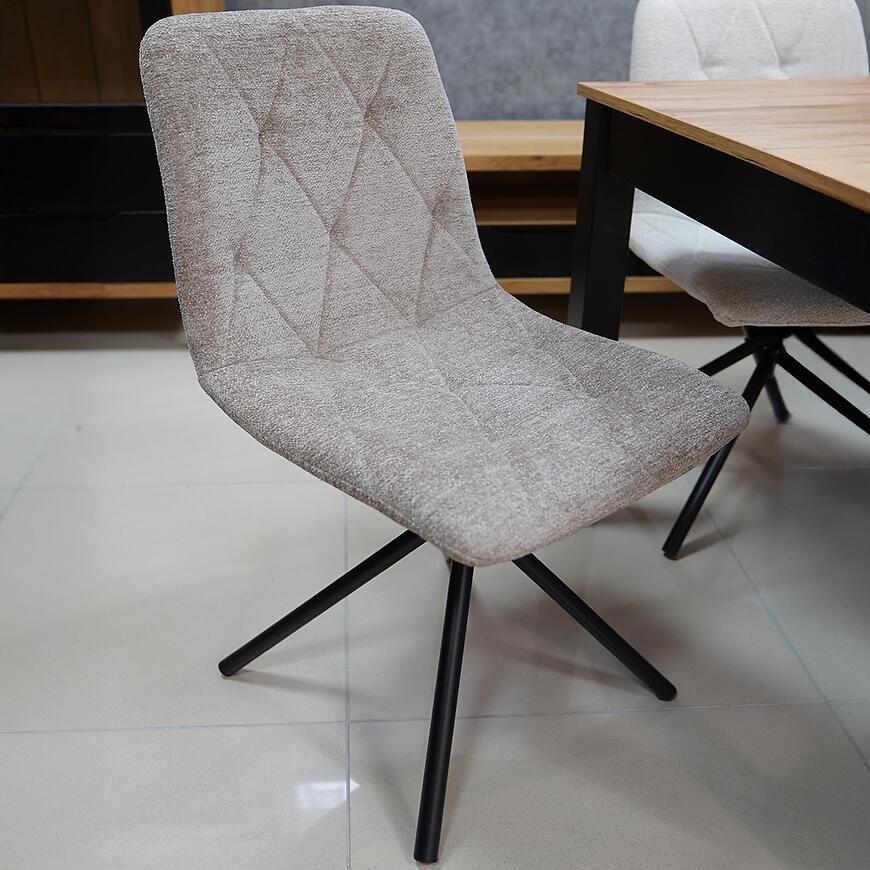 Czarny metalowy stelaż nadaje krzesłu stabilności oraz nowoczesnego wyglądu. Metalowa rama jest odporna na codzienne użytkowanie, a niska waga mebla – jedynie 6 kg – umożliwia łatwe przenoszenie i ustawianie w dowolnym miejscu. Zestawienie metalowej konstrukcji z beżową tapicerką w kolorze cappuccino sprawia, że krzesło prezentuje się elegancko i uniwersalnie.