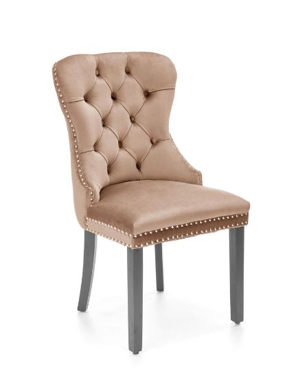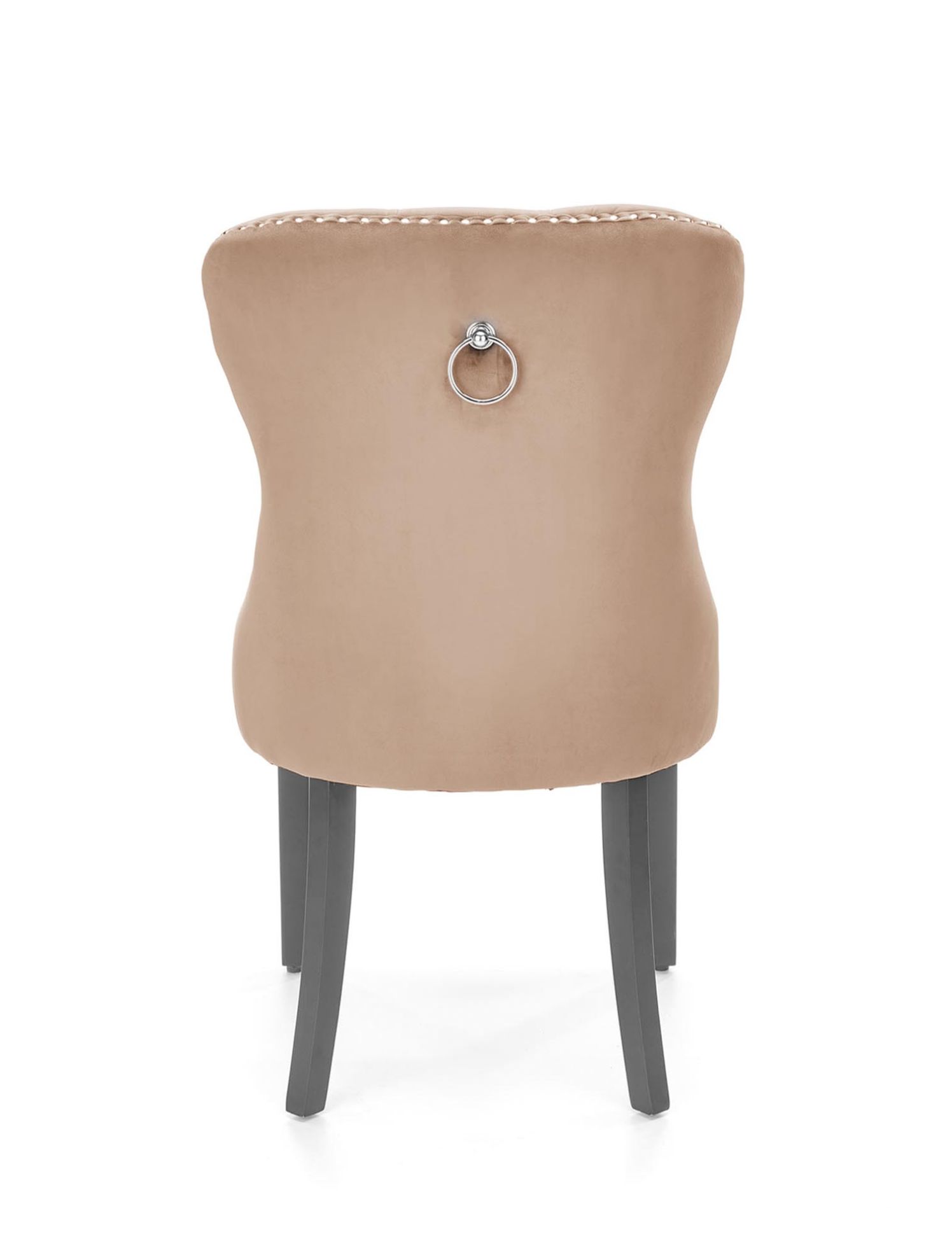 Krzesło Malphite zostało zaprojektowane w stylistyce glamour, łącząc elegancję z klasycznym wykonaniem. Drewniany stelaż w kolorze czarnym gwarantuje trwałość i stabilność mebla, a proste nogi o prostokątnym przekroju podkreślają harmonijną sylwetkę krzesła, dodając mu wyrafinowanego charakteru.