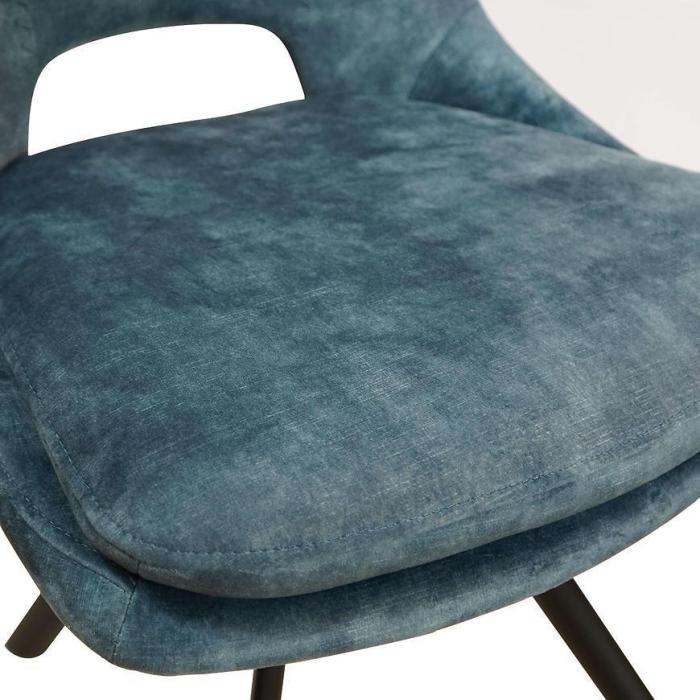 Krzesło tapicerowane, które idealnie wpasuje się w jadalnie, pokój dzienny lub inne pomieszczenie. Krzesło wniesie do wnętrza elegancję oraz ciekawy wygląd. Dzięki swojej kolorystyce skomponuje się z większością aranżacji. Siedzisko krzesła zostało pokryte tkaniną, natomiast wypełnienie pianką zapewni komfort użytkowania. Całość została umieszczona na stabilnym, metalowym stelażu w kolorze czarnym. Wysokość do siedziska 49 cm.