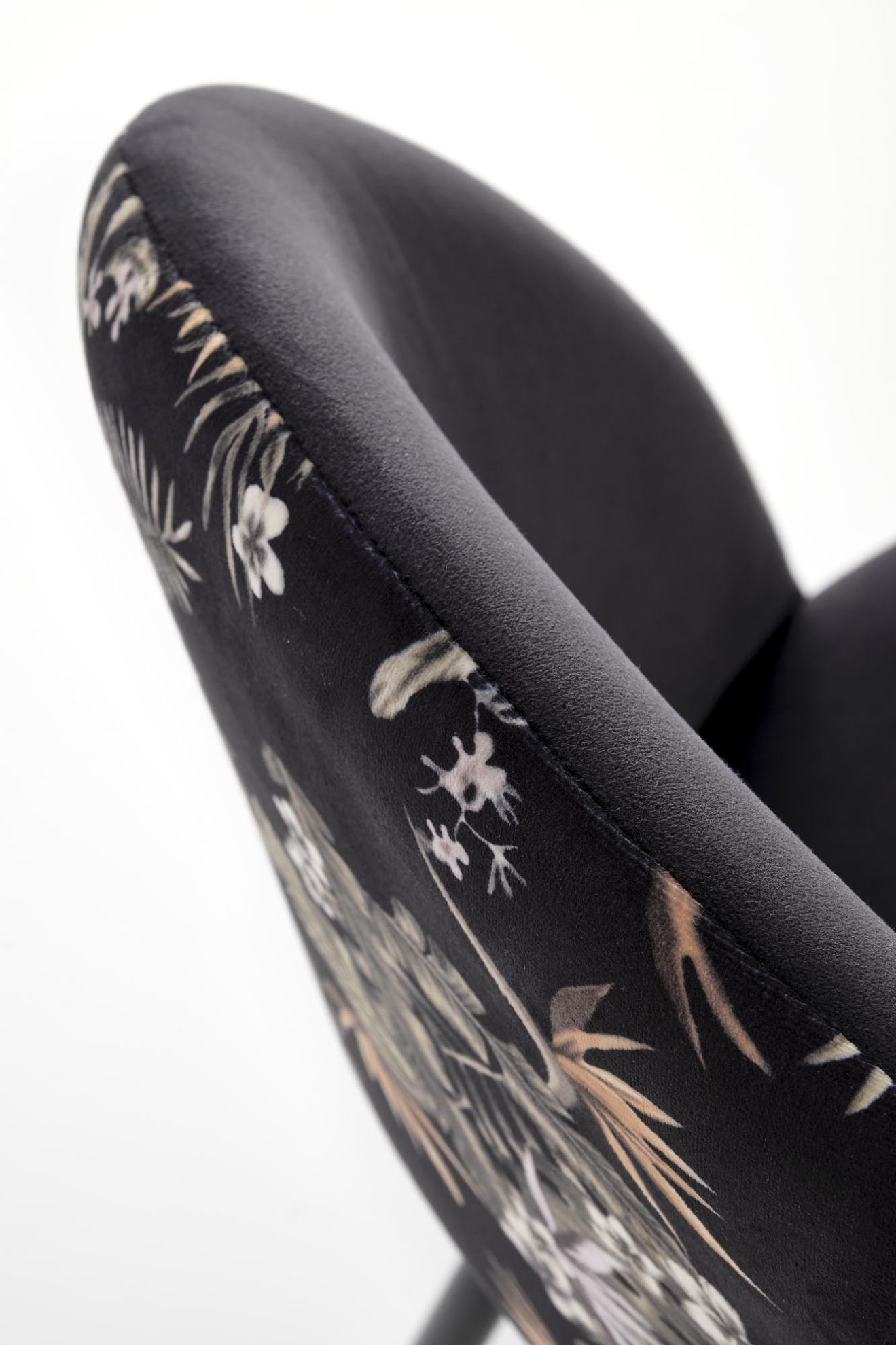 Siedzisko tego krzesła zostało obszyte tkaniną typu velvet, co nadaje mu niezwykłą miękkość i luksusowy wygląd. Velvet jest tkaniną, która zachwyca swoją miękką fakturą i intensywnymi kolorami, nadając meblowi wyjątkowy charakter. Wygodne i ergonomiczne siedzisko zapewnia komfort, który docenisz podczas dłuższego siedzenia.