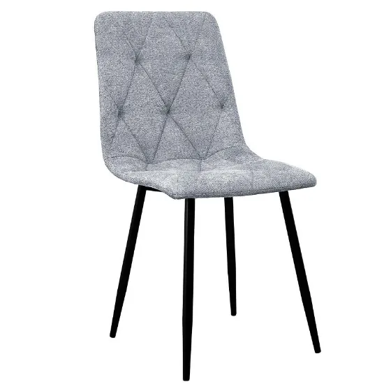 Siedzisko krzesła Naomi zostało wykonane z wysokiej jakości tkaniny w kolorze ciemnego szarego, która jest przyjemna w dotyku i dobrze sprawdza się w codziennym użytkowaniu. Wypełnienie z pianki zapewnia komfort siedzenia, umożliwiając wygodne korzystanie z krzesła przez dłuższy czas. Tapicerowane siedzisko dobrze komponuje się z metalową konstrukcją, tworząc spójną formę pasującą do nowoczesnych wnętrz.