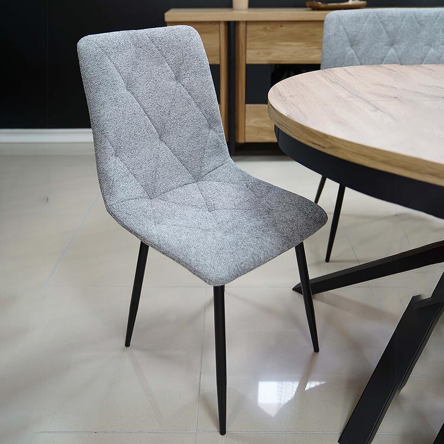 Krzesło Naomi w kolorze ciemnego szarego to propozycja dla osób poszukujących nowoczesnego krzesła do jadalni, kuchni lub salonu, które łączy surową estetykę stylu loftowego z komfortem codziennego użytkowania. Stonowany, ciemnoszary kolor tapicerowanego siedziska doskonale komponuje się z czarnym metalowym stelażem, tworząc spójną i elegancką całość. Dzięki uniwersalnej kolorystyce krzesło Naomi łatwo dopasować do różnych aranżacji wnętrz, zarówno nowoczesnych, industrialnych, jak i minimalistycznych.
