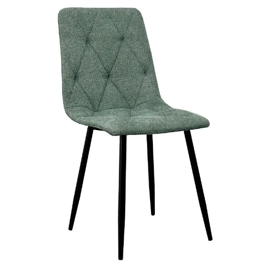 Siedzisko krzesła Naomi zostało wykonane z tkaniny, która jest przyjemna w dotyku i dobrze prezentuje się w nowoczesnych wnętrzach. Wypełnienie z pianki zapewnia komfort podczas siedzenia, zarówno podczas krótkich posiłków, jak i dłuższych spotkań przy stole. Tapicerka w zielonym kolorze nadaje wnętrzu świeżości i może stanowić ciekawy akcent kolorystyczny w aranżacji jadalni lub salonu.
