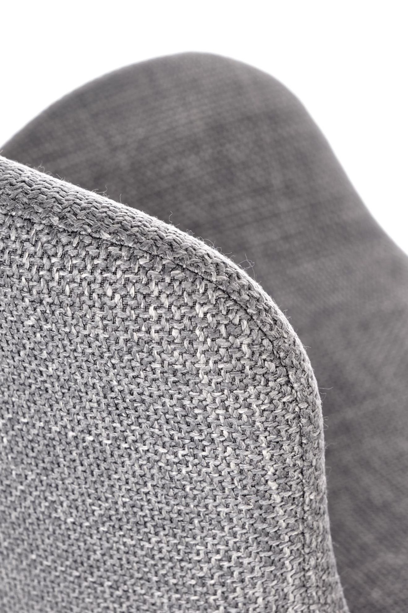 Kolor tkaniny doskonale współgra z stalą, tworząc harmonijną całość i nadając krzesłu spokojny, a zarazem elegancki wygląd.