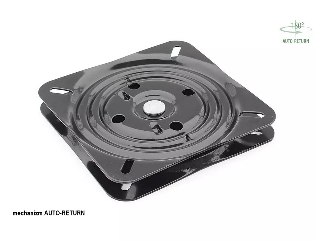 Metalowy, czarny stelaż krzesła Mateo zapewnia stabilność oraz trwałość. Wyposażony w innowacyjny system AUTO-RETURN, który umożliwia obrót siedziska o 180 stopni z automatycznym powrotem do pierwotnej pozycji, krzesło oferuje wyjątkowy komfort użytkowania. Ta funkcja szczególnie sprawdzi się w miejscach, gdzie krzesło może być często obracane, ułatwiając użytkownikom zmianę pozycji oraz szybki powrót do pierwotnego ustawienia bez potrzeby dodatkowej regulacji.