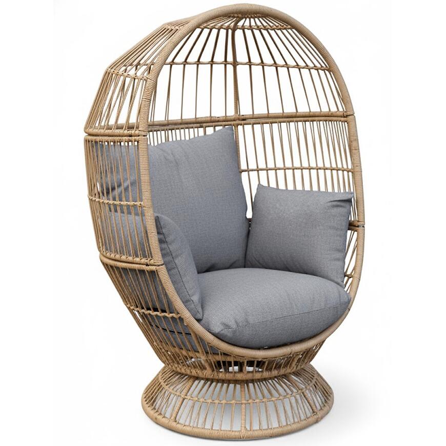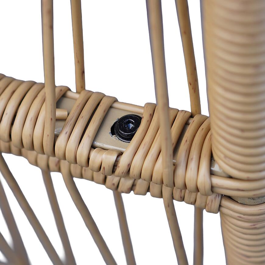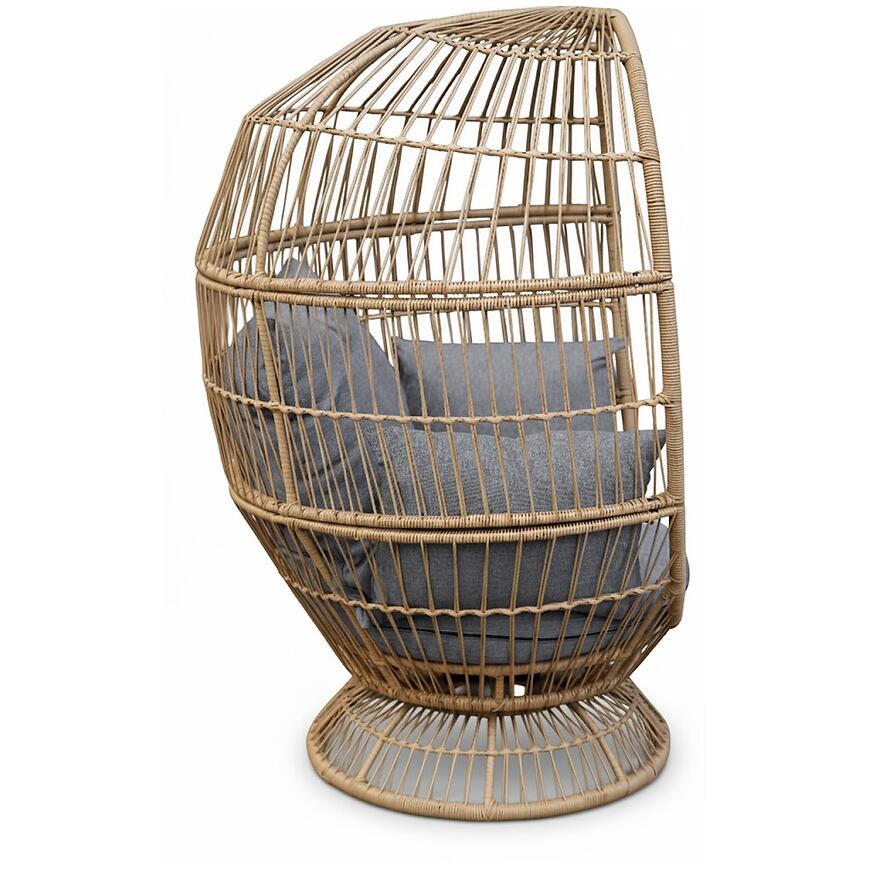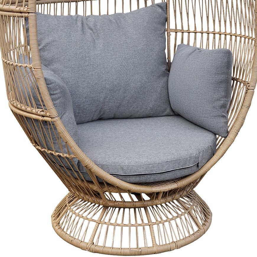 Krzesło Cuddie zostało zaprojektowane z myślą o maksymalnym komforcie – obrotowa konstrukcja pozwala na płynny obrót o 360°, a komplet miękkich poduszek na siedzisku i oparciu zapewnia wygodę podczas długiego siedzenia. Poduszki są wykonane z materiałów łatwych w utrzymaniu czystości, co ułatwia codzienne użytkowanie. Wymiary fotela – 147 cm wysokości, 97 cm szerokości i 113 cm głębokości – sprawiają, że doskonale sprawdzi się zarówno w większych, jak i mniejszych przestrzeniach ogrodowych.