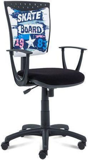 - krzesło dostepne w wykończeniu: oparcie tkanina z nadrukiem, siedzisko czarne tkanina M43