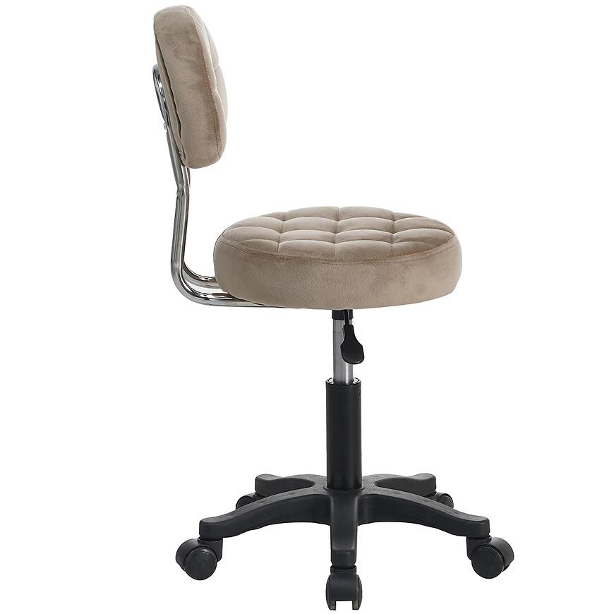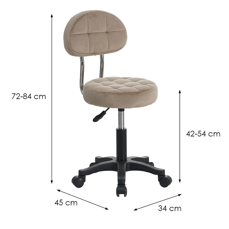 Krzesło obrotowe Gianna 12116 beżowe łączy nowoczesny design z funkcjonalnością. Wykonane z tkaniny i plastiku, posiada wygodne siedzisko wypełnione pianką, co zapewnia komfort użytkowania. Regulacja wysokości w zakresie 42–54 cm pozwala dopasować je do potrzeb, a brak podłokietników nadaje mu lekkości i swobody. Niewielka waga ułatwia przestawianie, a beżowy kolor wprowadza elegancję i uniwersalność do każdej aranżacji.