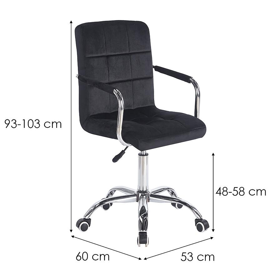 Krzesło biurowe Maron posiada regulację wysokości siedziska w zakresie od 48 cm do 58 cm, a wysokość całkowita wynosi od 93 cm do 103 cm, co umożliwia idealne dopasowanie krzesła do indywidualnych potrzeb użytkownika. Maksymalne obciążenie 110 kg sprawia, że krzesło jest stabilne i bezpieczne w codziennym użytkowaniu.