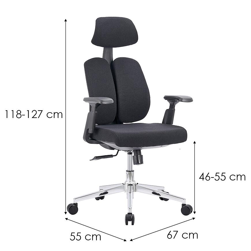 Krzesło obrotowe Nerik oferuje regulację wysokości w zakresie od 118 do 127 cm, co umożliwia idealne dopasowanie do biurka i wzrostu użytkownika. Wysokość siedziska można ustawić między 46 a 55 cm, co przekłada się na wygodę podczas pracy w różnych warunkach.