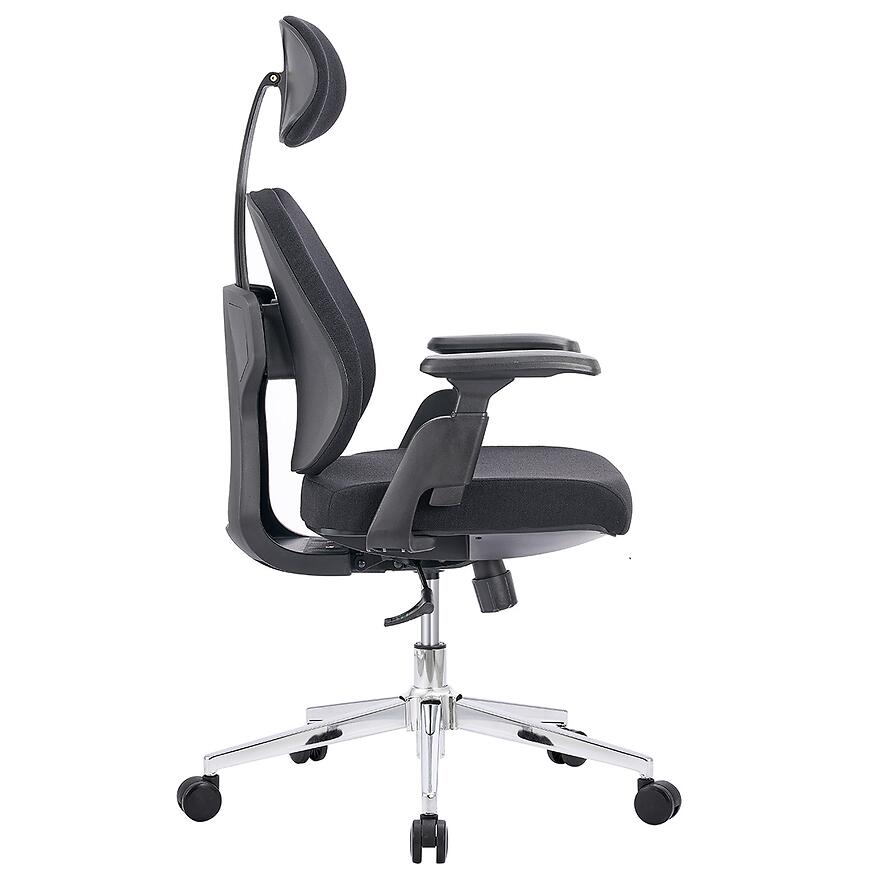 Model Nerik został zaprojektowany z myślą o ergonomii. Regulowane oparcie pozwala dopasować kąt nachylenia do indywidualnych preferencji, co przekłada się na lepsze wsparcie pleców. Dodatkowo regulowany zagłówek wspiera odcinek szyjny, odciążając kark podczas pracy przy komputerze.