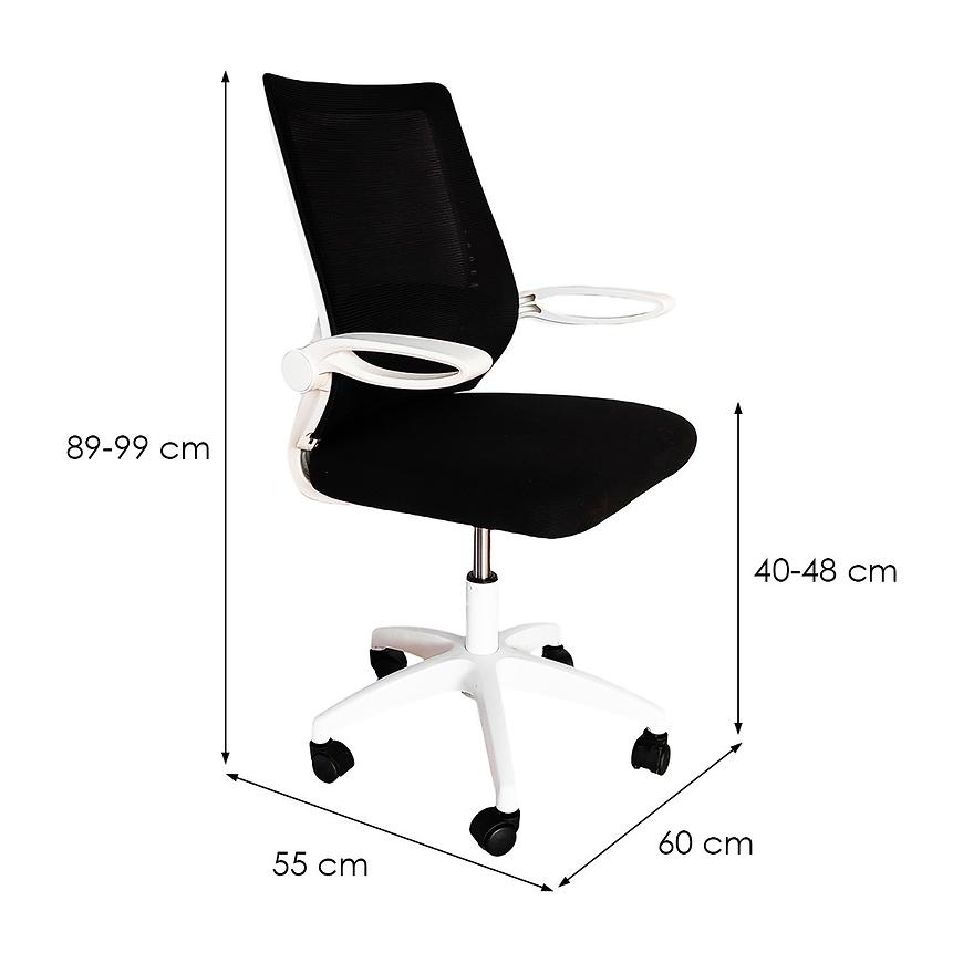 Zalety tego krzesła zaczynają się od jego odpowiednich wymiarów – 60 cm szerokości i 55 cm głębokości, które są optymalne dla różnych biurek i stanowisk pracy. Klasyczny kolor czarny nadaje mu elegancji, podczas gdy biały dodaje świeżości i stylu.