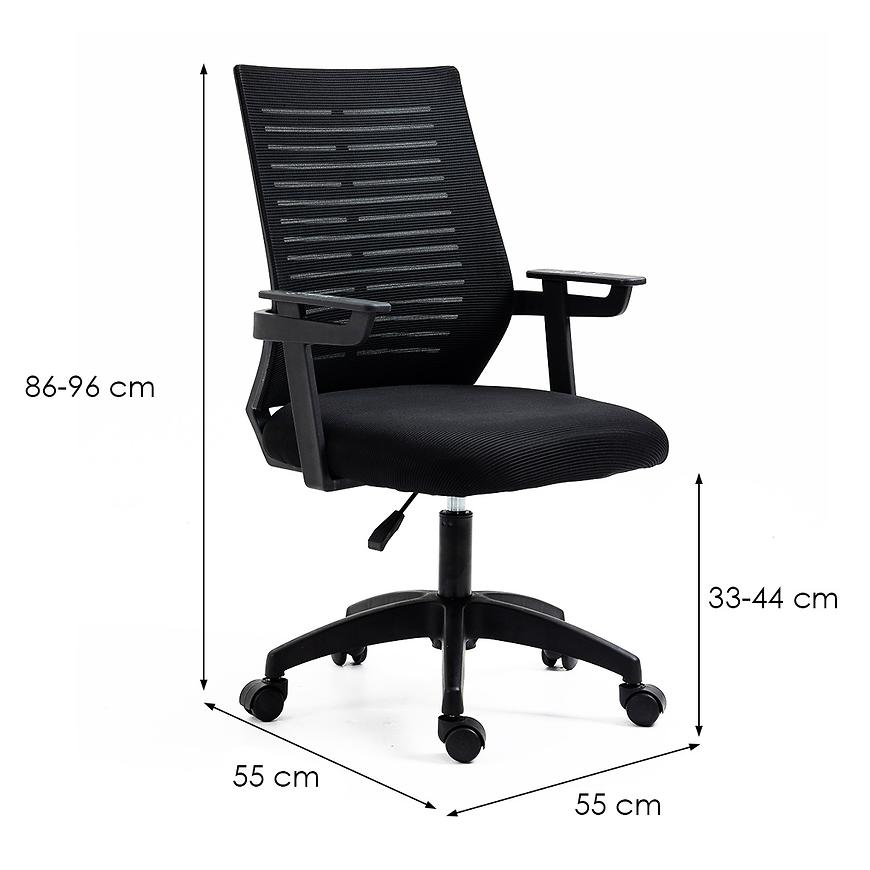 Wysokość całkowita krzesła można dostosować w zakresie od 86 cm do 96 cm, co umożliwia dopasowanie siedziska do Twojego wzrostu oraz wysokości biurka. Dodatkowo, wysokość siedziska jest regulowana w przedziale od 33 cm do 44 cm nad podłogą, dzięki czemu możesz łatwo znaleźć optymalną pozycję, która zapewni odpowiednie wsparcie dla nóg i kręgosłupa.
