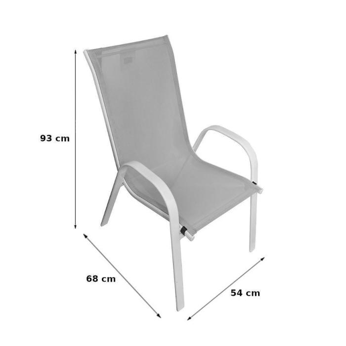 Materiał wykonania to tekstylen i metal małowany proszkowo, wiec łatwo utrzymać je w czystości. Materiał opleciony i zszyty zablokowany przesuwanymi zaślepkami, nie naciąga się i nie odkształca. Nogi wzmocnione podwójnie.