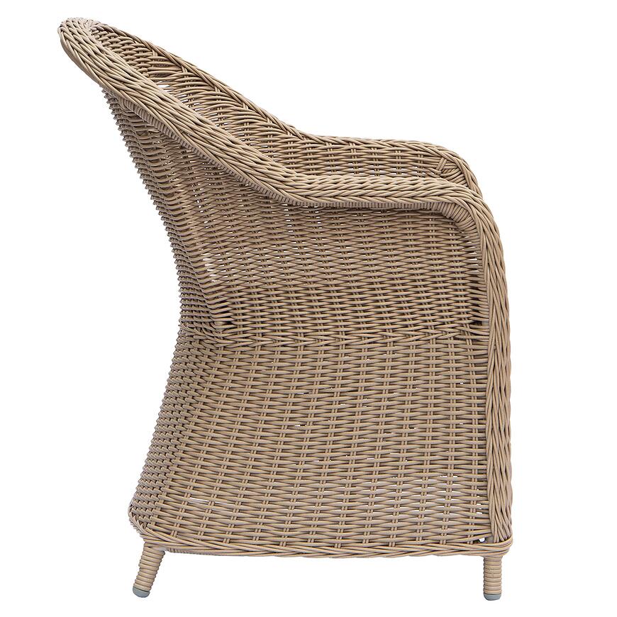 Naturalny kolor, trwałe materiały i wygodne siedzisko czynią to krzesło ogrodowe z technorattanu praktycznym wyborem do każdej przestrzeni na świeżym powietrzu.
