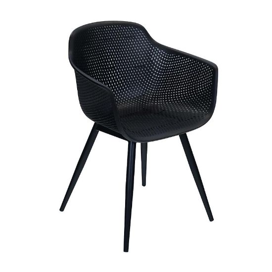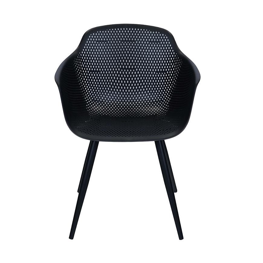 Krzesło ogrodowe Orte w kolorze czarnym to doskonały wybór dla tych, którzy poszukują zarówno funkcjonalności, jak i estetyki w swoim otoczeniu zewnętrznym. Wykonane z wysokiej jakości polipropylenu siedzisko i metalowego stelaża, krzesło Orte łączy w sobie trwałość z nowoczesnym designem.