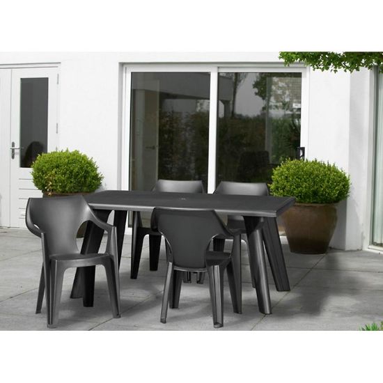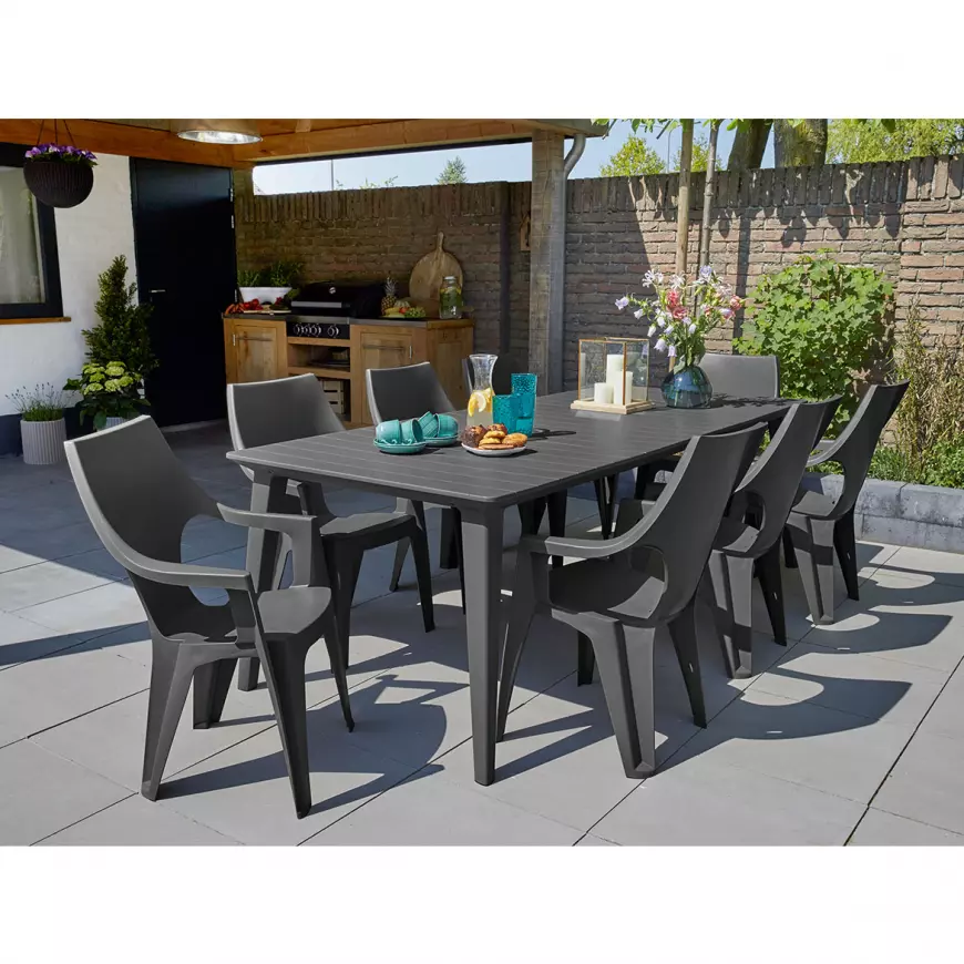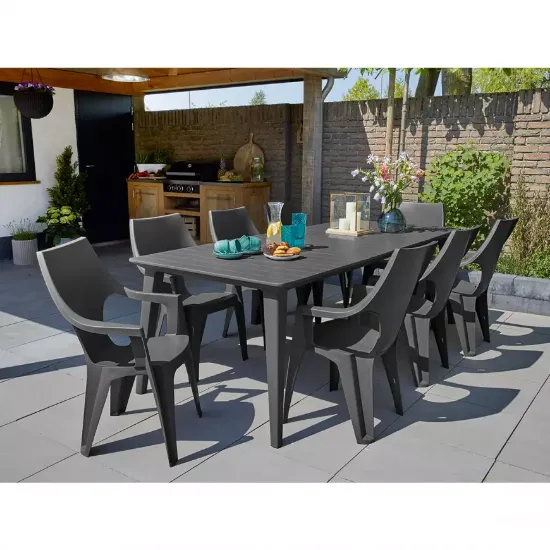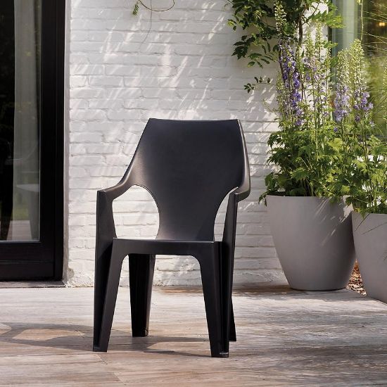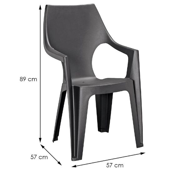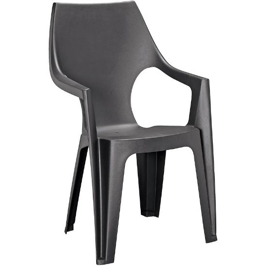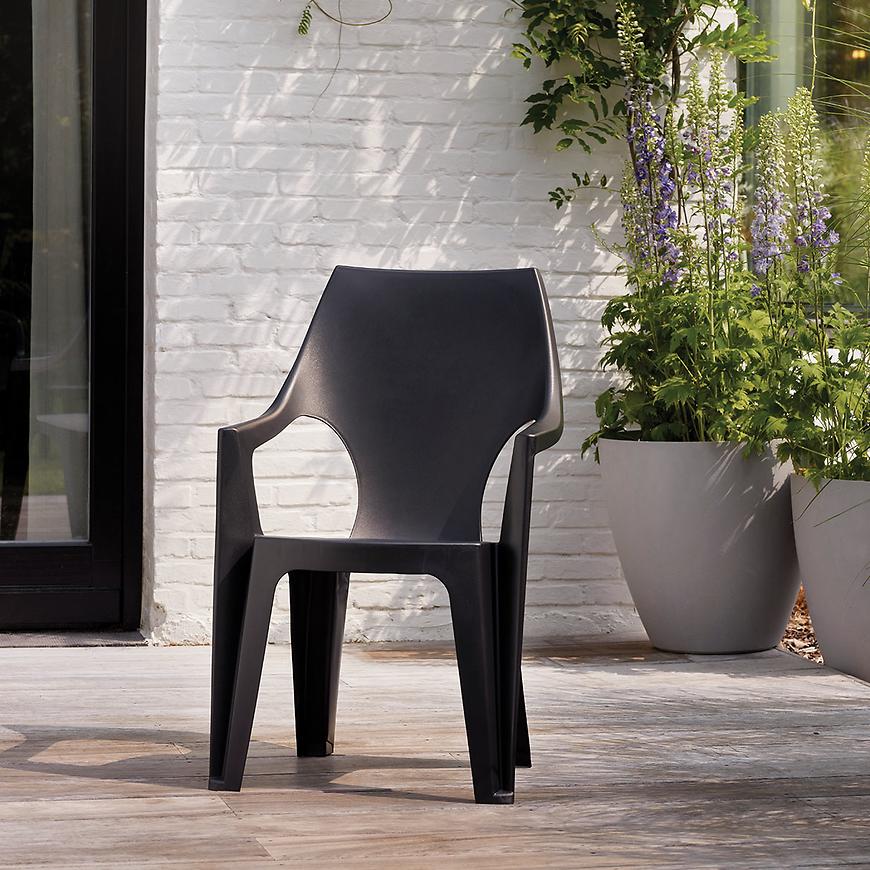 Krzesło ogrodowe plastikowe Dante z wysokim oparciem w kolorze grafitowym to perfekcyjne połączenie wyrafinowanego designu, wygodnego użytkowania i praktyczności.