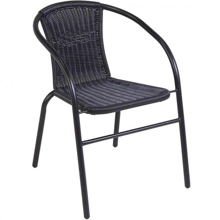 Klasyczne krzesło Bistro wykonane z technorattanu. Idealne na taras czy balkon. Uniwersalny kolor komponuje się z każdą aranżacją i stylem ogrodu. Praktyczny kształt pozwala na długie i wygodne użytkowanie. Maksymalnie naciągnięta tkanina jest bardzo wygodna. Wytrzymała rama została wykonana z metalu i pomalowana proszkowo, dzięki temu powierzchnia jest gładka i błyszcząca.