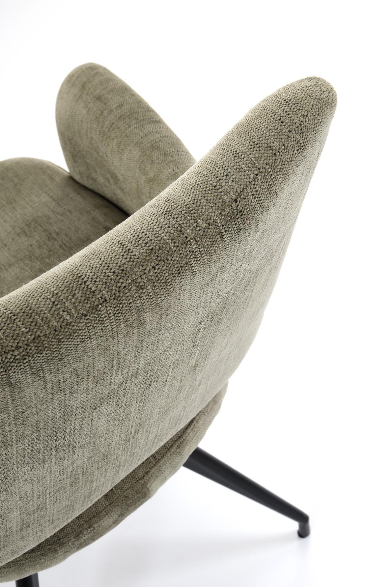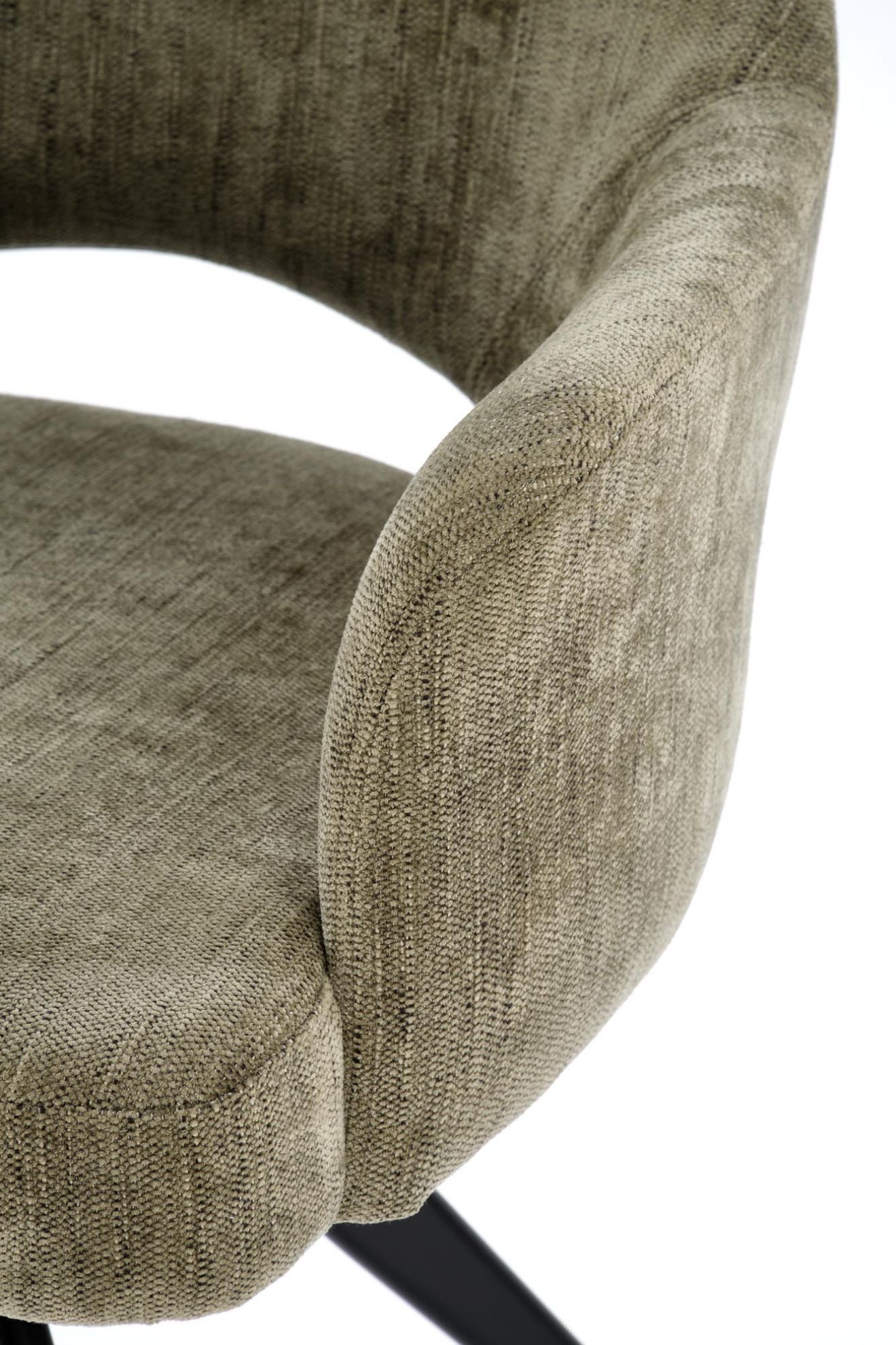 Krzesło jest wykonane z wysokiej jakości materiałów: siedzisko i oparcie pokryte są wytrzymałą tkaniną (ODIN#77) w kolorze oliwkowym, co zapewnia komfort użytkowania. Nogi krzesła są wykonane ze stali malowanej proszkowo, co dodaje nowoczesnego wyglądu i zapewnia solidność konstrukcji.