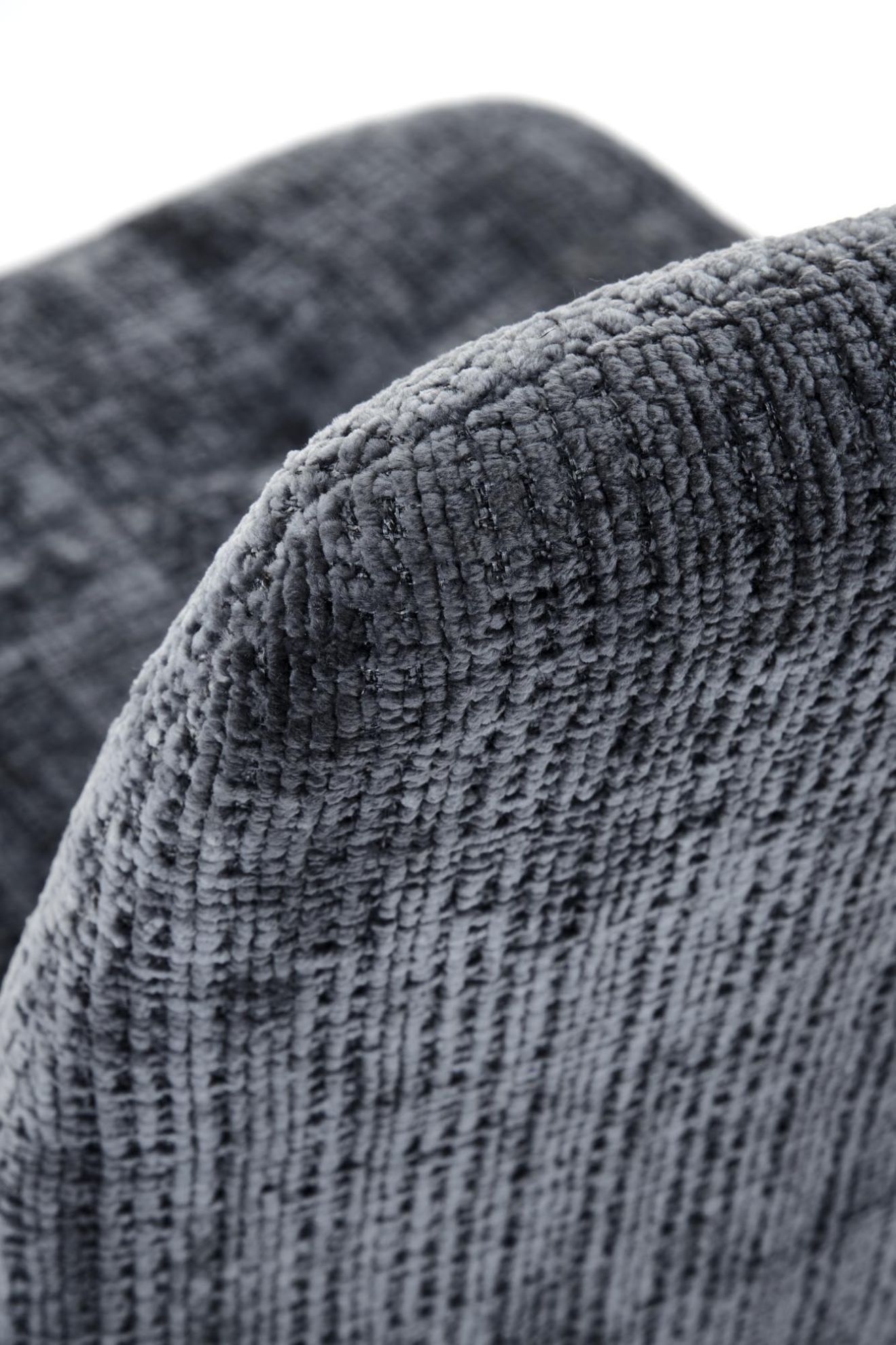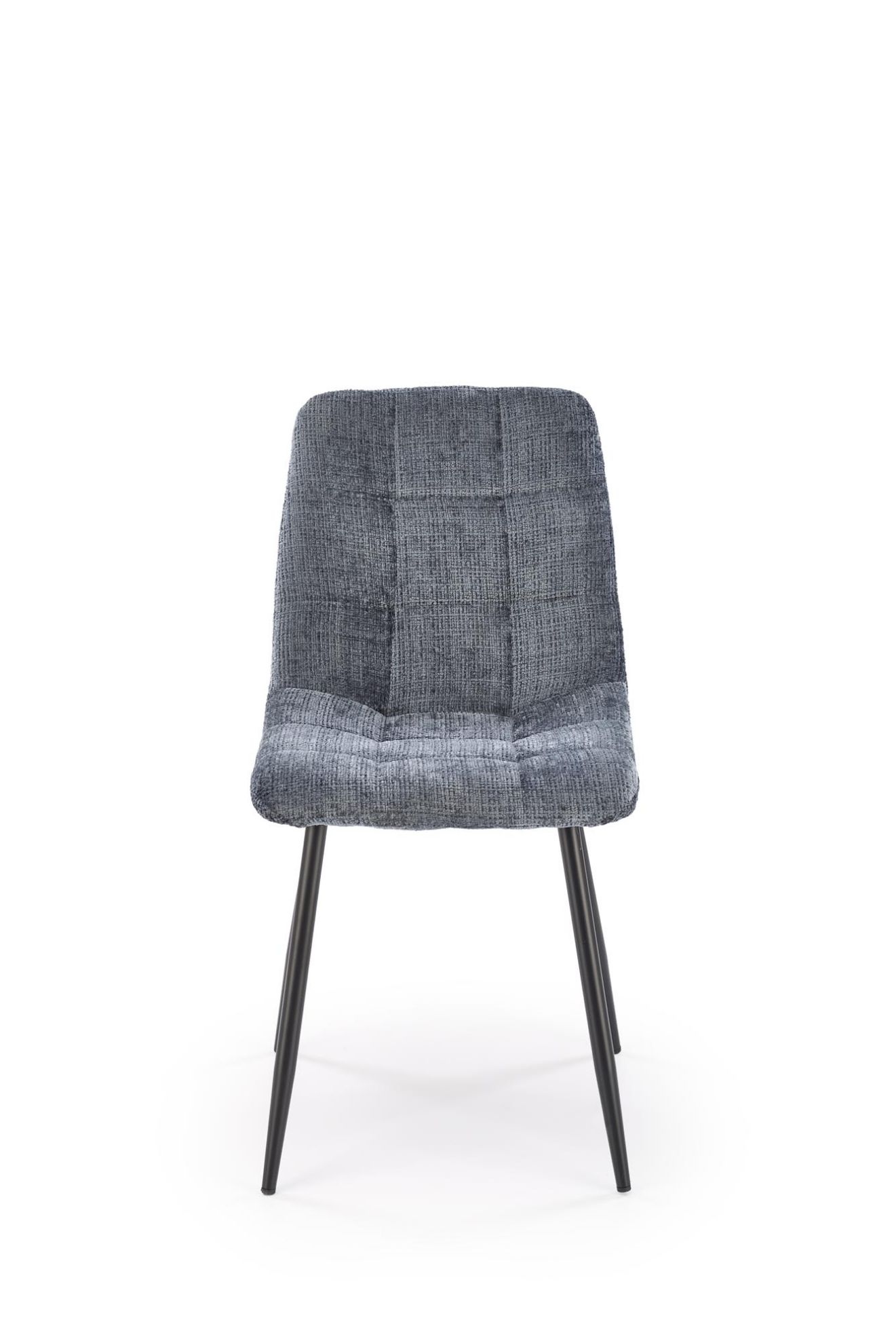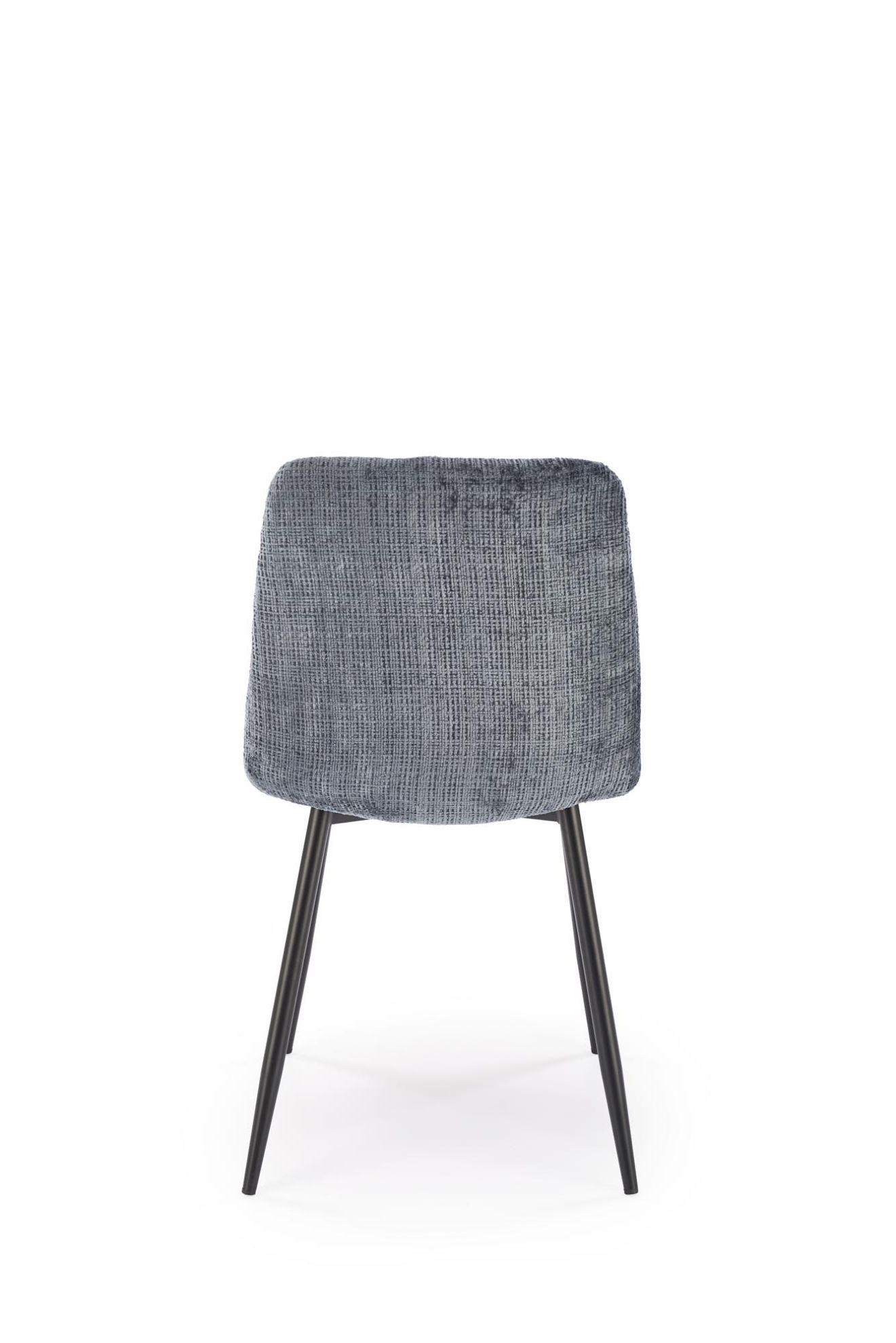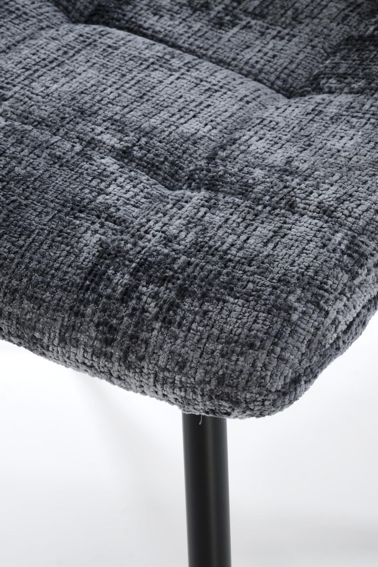 Siedzisko i oparcie krzesła wykonane są z przyjemnej w dotyku tkaniny w eleganckim popielatym kolorze, co nadaje mu luksusowy wygląd i sprawia, że idealnie komponuje się z różnymi stylami aranżacyjnymi. Stabilna konstrukcja krzesła opiera się na nogach wykonanych ze stali malowanej proszkowo, co gwarantuje trwałość i nowoczesny wygląd.