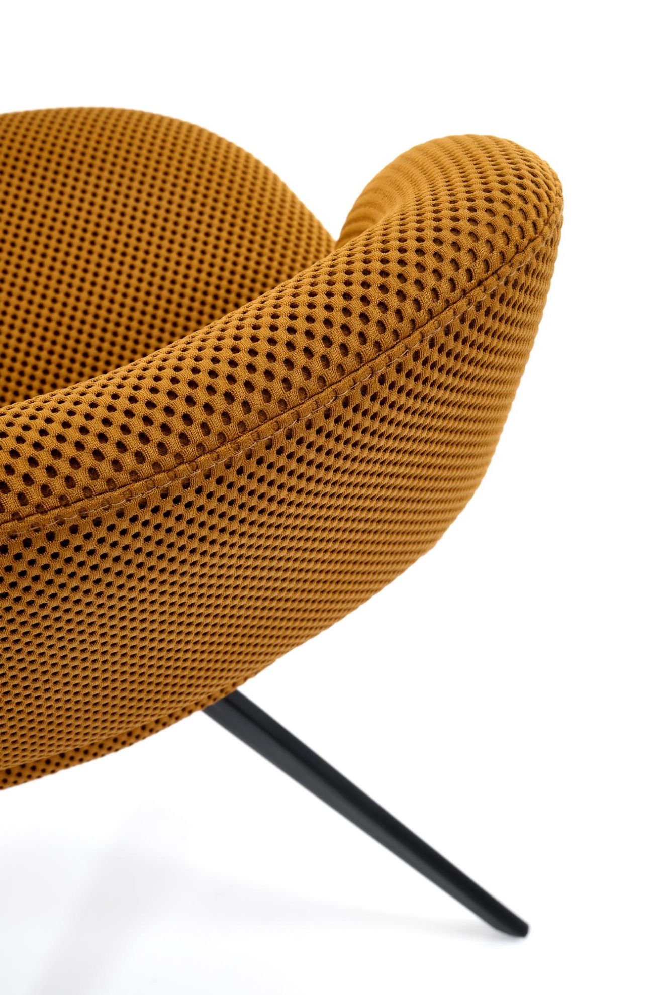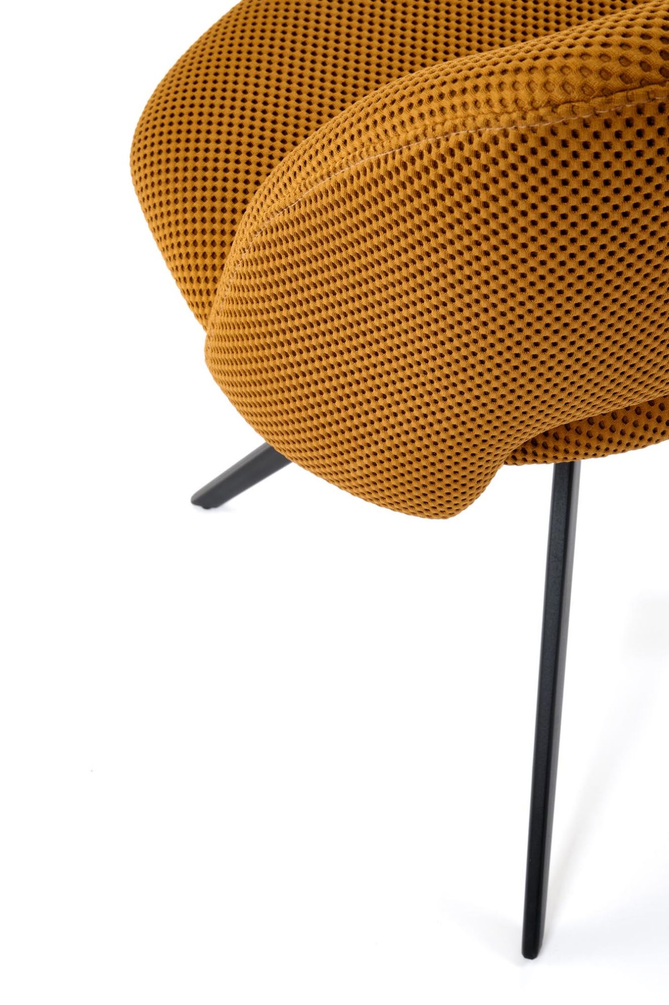 Krzesło jest wykonane z wysokiej jakości materiałów: siedzisko i oparcie pokryte są wytrzymałą tkaniną membranową w kolorze musztardowym, co zapewnia komfort użytkowania. Nogi krzesła są wykonane ze stali malowanej proszkowo, co dodaje nowoczesnego wyglądu i zapewnia solidność konstrukcji.