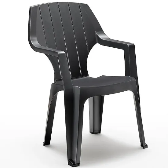 Krzesło Alta w kolorze grafitowym to połączenie funkcjonalności i nowoczesnego designu, idealne do ogrodu, balkonu, tarasu czy przestrzeni komercyjnych. Wykonane w całości z trwałego plastiku, krzesło jest odporne na wilgoć, promieniowanie UV i zmienne warunki atmosferyczne, co zapewnia długotrwałe użytkowanie. Lekka konstrukcja umożliwia łatwe przenoszenie, a ergonomiczne podłokietniki zwiększają komfort podczas siedzenia.
