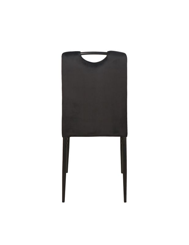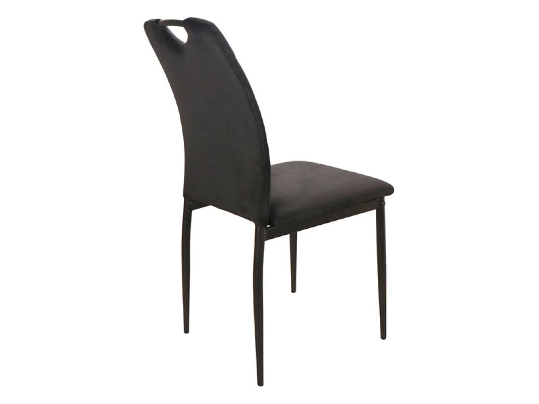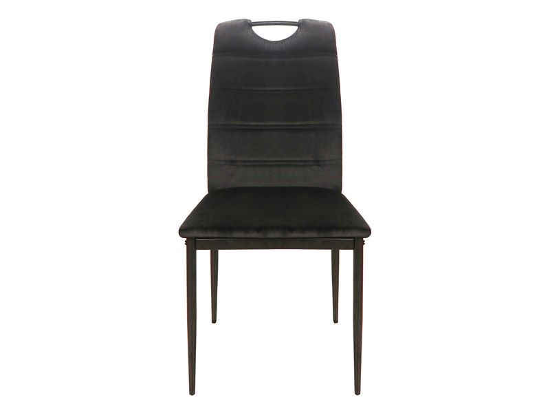 Tapicerka krzesła została wykonana z tkaniny aksamitnej Bluvel, który nadaje mu luksusowy wygląd i przyjemną fakturę. Czarny kolor tkaniny dodaje krzesłu elegancji i sprawia, że doskonale komponuje się z różnymi aranżacjami wnętrz.