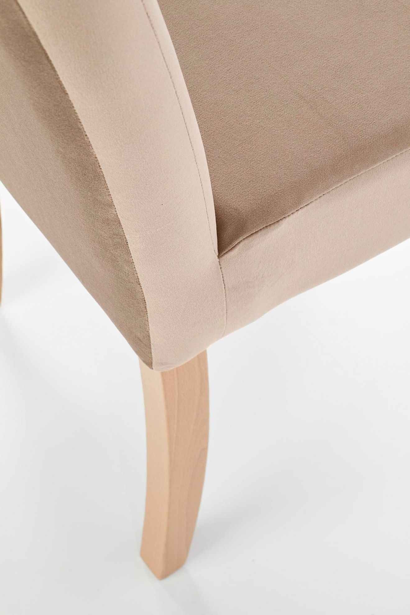Subtelna tkanina w kolorze jasnego brązu o nazwie MONOLITH 09 dodaje krzesłu wyjątkowego charakteru. Jej delikatna faktura i dopasowany odcień doskonale komponują się z naturalnym drewnem, tworząc spójną i harmonijną całość.