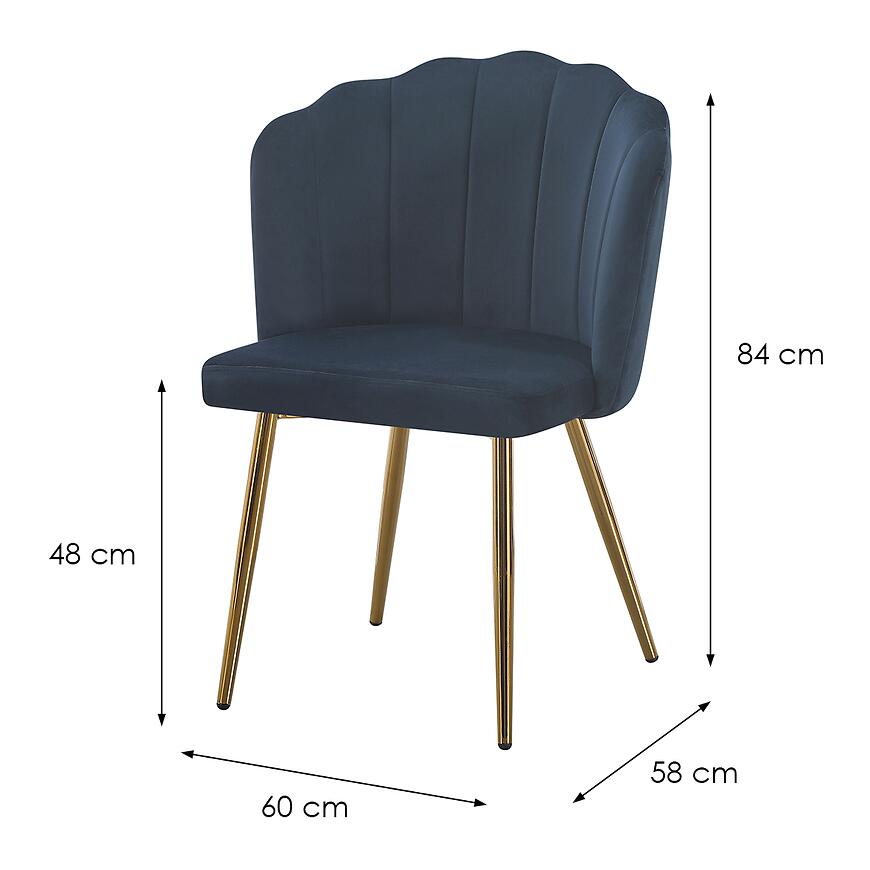 Krzesło Robin 12331 granatowe to klasyczne i eleganckie krzesło, które łączy wygodę z trwałą konstrukcją. Wykonane z metalu i tapicerki, posiada siedzisko wypełnione pianką, zapewniające komfort użytkowania. Stabilny, złoty stelaż dodaje charakteru i trwałości, a granatowy kolor siedziska wprowadza elegancki i wyrazisty akcent do wnętrza. Wysokość siedziska wynosi 48 cm, a lekka konstrukcja ułatwia przestawianie krzesła.