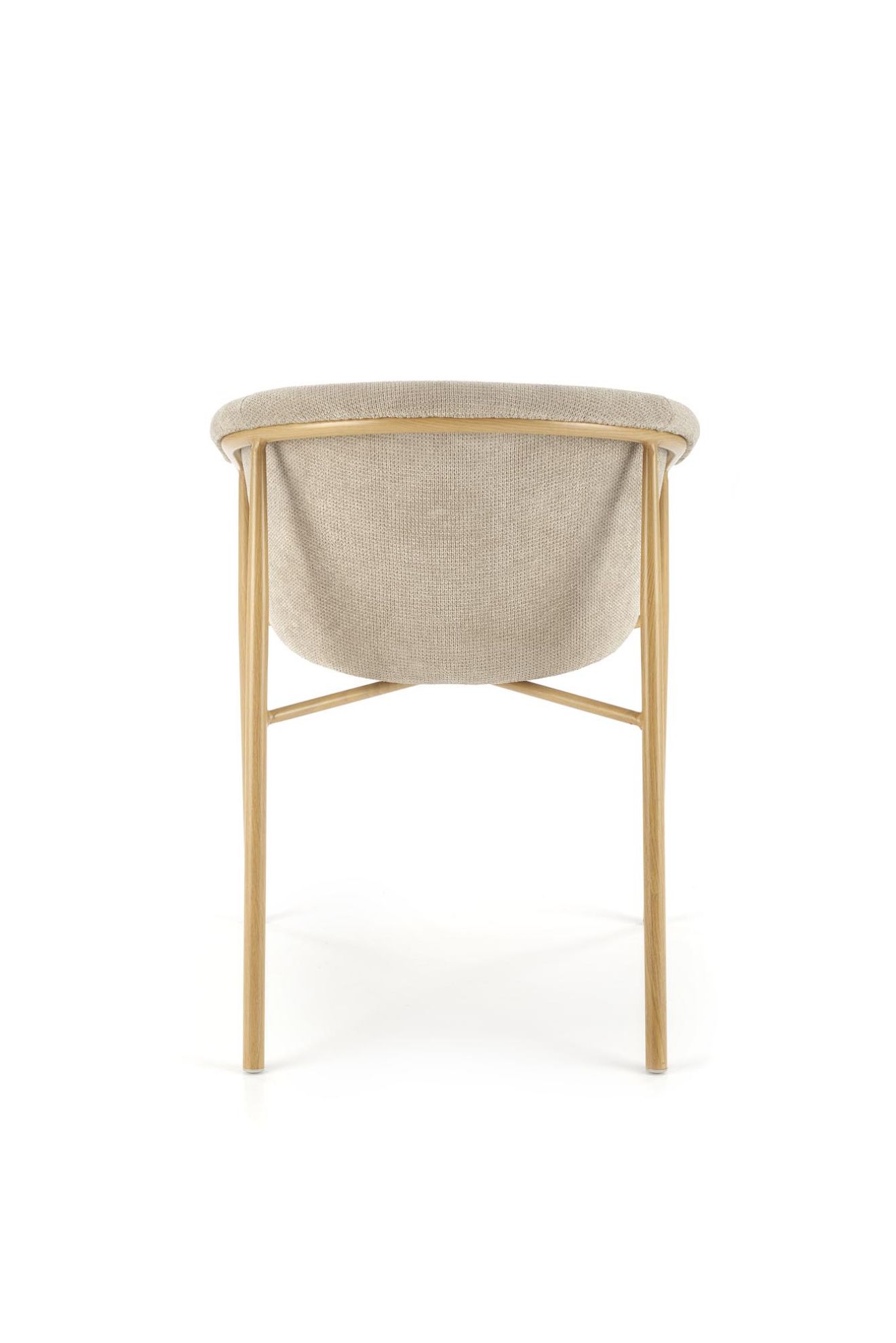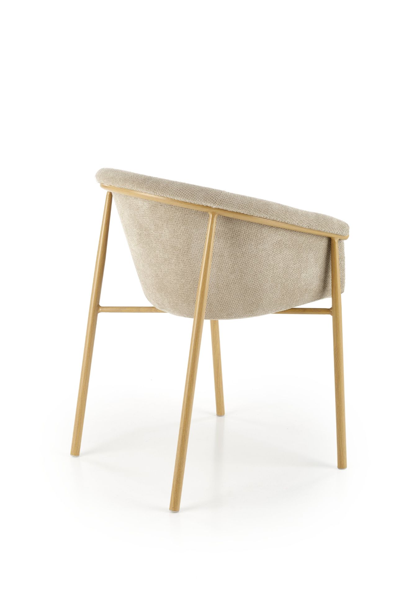 Konstrukcja krzesła została wykonana z trwałej stali, która została malowana proszkowo. Kolor stalowej ramy doskonale współgra z delikatnym odcieniem tkaniny, tworząc harmonijną całość. Stalowa konstrukcja gwarantuje stabilność i wytrzymałość, co czyni to krzesło doskonałym wyborem zarówno do użytku prywatnego, jak i komercyjnego.