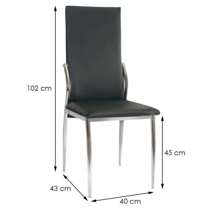Krzesło Sawanna to mebel funkcjonalny. Klasyczny styl krzesła wpasuje się w niejedno wnętrze. Krzesło będzie pasowało do kuchni, jadalni, pokoju dziennego oraz innych pomieszczeń. Nogi zostały wykonane z metalu w kolorze srebrnym, a siedzisko pokryte ekoskórą w kolorze czarnym. Wysokość do siedziska wynosi 45 cm.