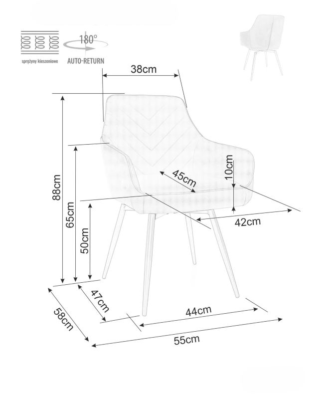 Głębokość siedziska [cm]:
