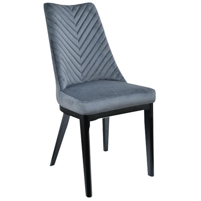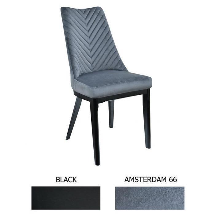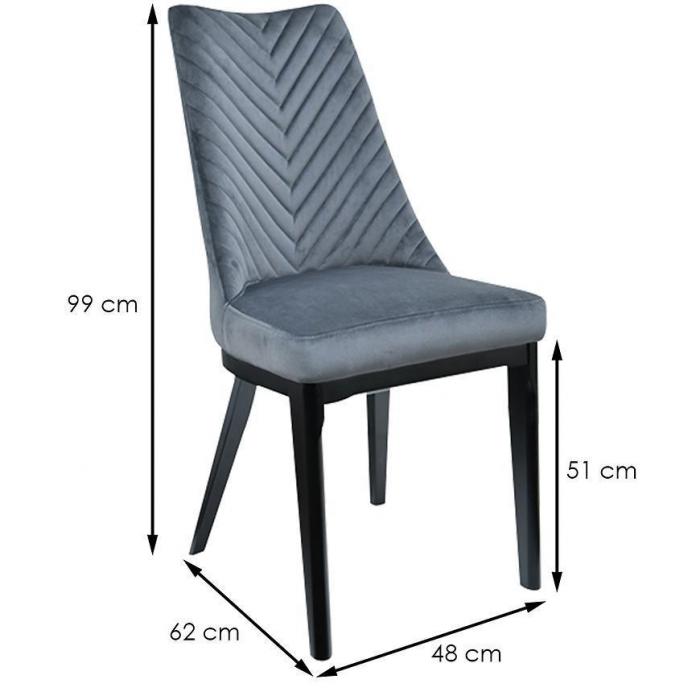 Krzesło tapicerowane, które idealnie wpasuje się w jadalnie, pokój dzienny lub inne pomieszczenie. Krzesło wniesie do wnętrza elegancję oraz ciekawy wygląd. Dzięki swojej kolorystyce skomponuje się z większością aranżacji. Siedzisko krzesła zostało pokryte tkaniną, natomiast wypełnienie pianką zapewni komfort użytkowania. Całość została umieszczona na stabilnym, drewnianym stelażu w kolorze czarnym. Wysokość do siedziska 51 cm.