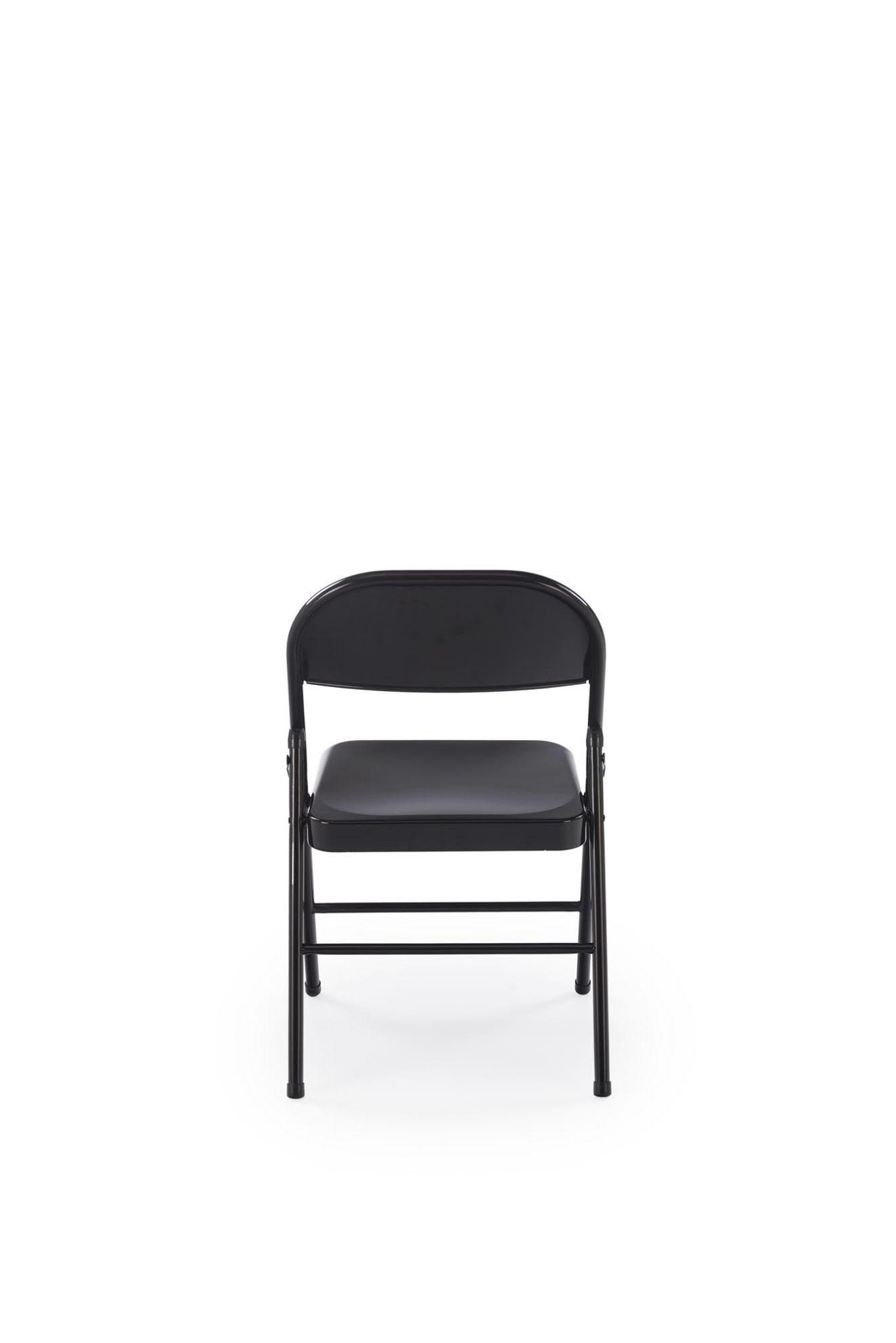 Krzesło składane 565 Skobo czarne to metalowe krzesło w stylu skandynawskim z funkcją składania. Szerokość 46 cm, wysokość 75 cm, twarde siedzisko, stabilny czarny stelaż i minimalistyczna forma.