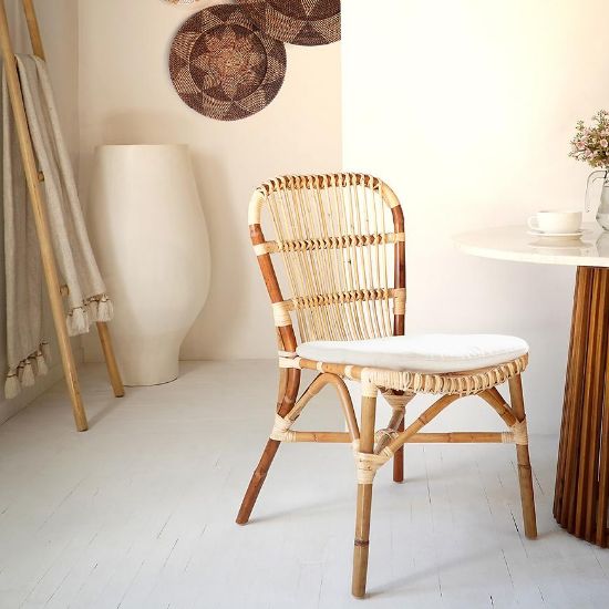 Materiał rattanu, użyty zarówno na siedzisku, jak i w stelażu, gwarantuje lekkość, wytrzymałość i naturalny urok. Klasyczny odcień drewna sprawia, że krzesło Sumatra doskonale komponuje się z różnorodnymi aranżacjami wnętrz, tworząc atmosferę ciepła i harmonii.