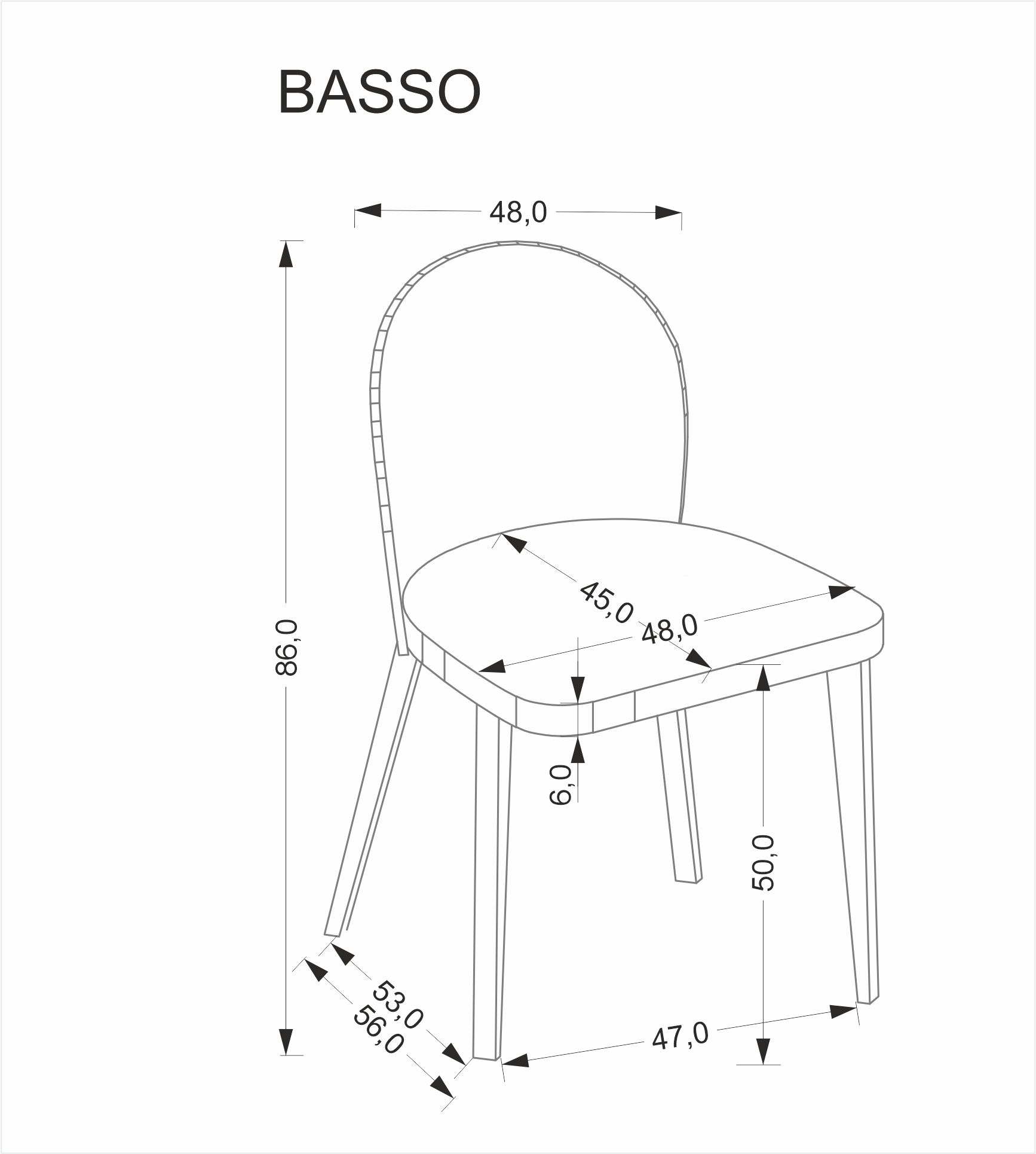 Wymiary i dane techniczne krzesła Tabo
